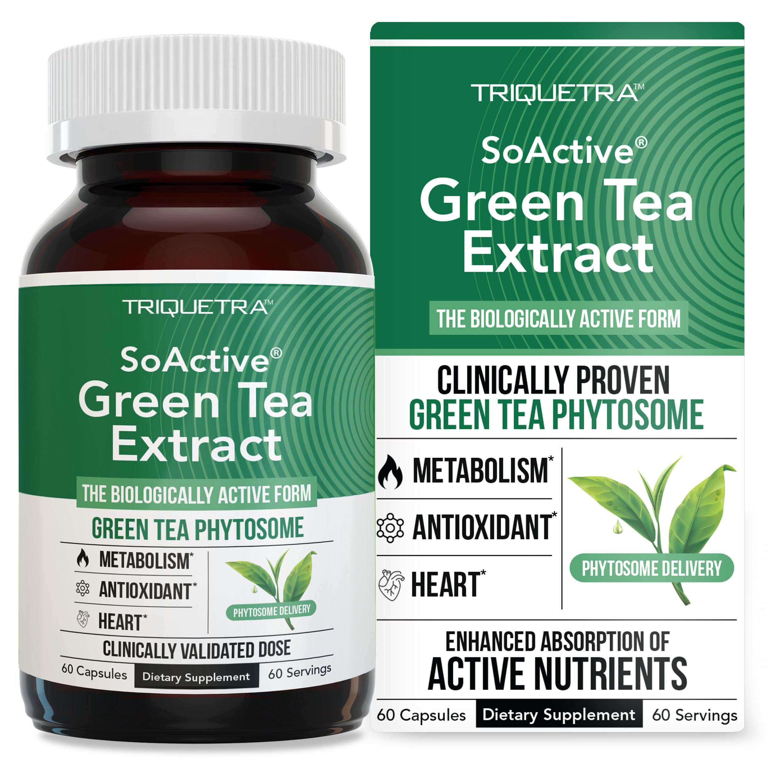 Full Spectrum of Green Tea Bioactives: Contains essential catechins and polyphenols, including EGCG, delivering a powerful blend of antioxidants and phytonutrients for maximum health benefits.*. Clinically Validated Dose: The 150 mg twice-daily dose of SoActive Green Tea was clinically studied in relation to healthy weight management, metabolic health, and cardiovascular benefits safely and effectively.*. Clinically Studied for Weight Management & Metabolic Benefits*: GreenSelect Phytosome is one of the few green tea extracts clinically tested for healthy weight management and metabolic support. In clinical trials, it has been shown to potentially support healthy weight loss and weight management.*. 2X Higher Absorption Compared to Standard Green Tea Extract: In a clinical trial, our GreenSelect Phytosome was shown to achieve 2X higher absorption compared to standard green tea extract, delivering the essential catechins with twice the effectiveness. The Most Biologically Active & Effective Form of Green Tea Extract: SoActive Green Tea is a GreenSelect Phytosome extract that is clinically shown to be optimally absorbed and utilized within the body. Standard green tea extracts struggle to be absorbed, limiting their effectiveness. SoActive Green Tea overcomes this problem, delivering green tea bioactives directly to the bloodstream for maximum health benefits.