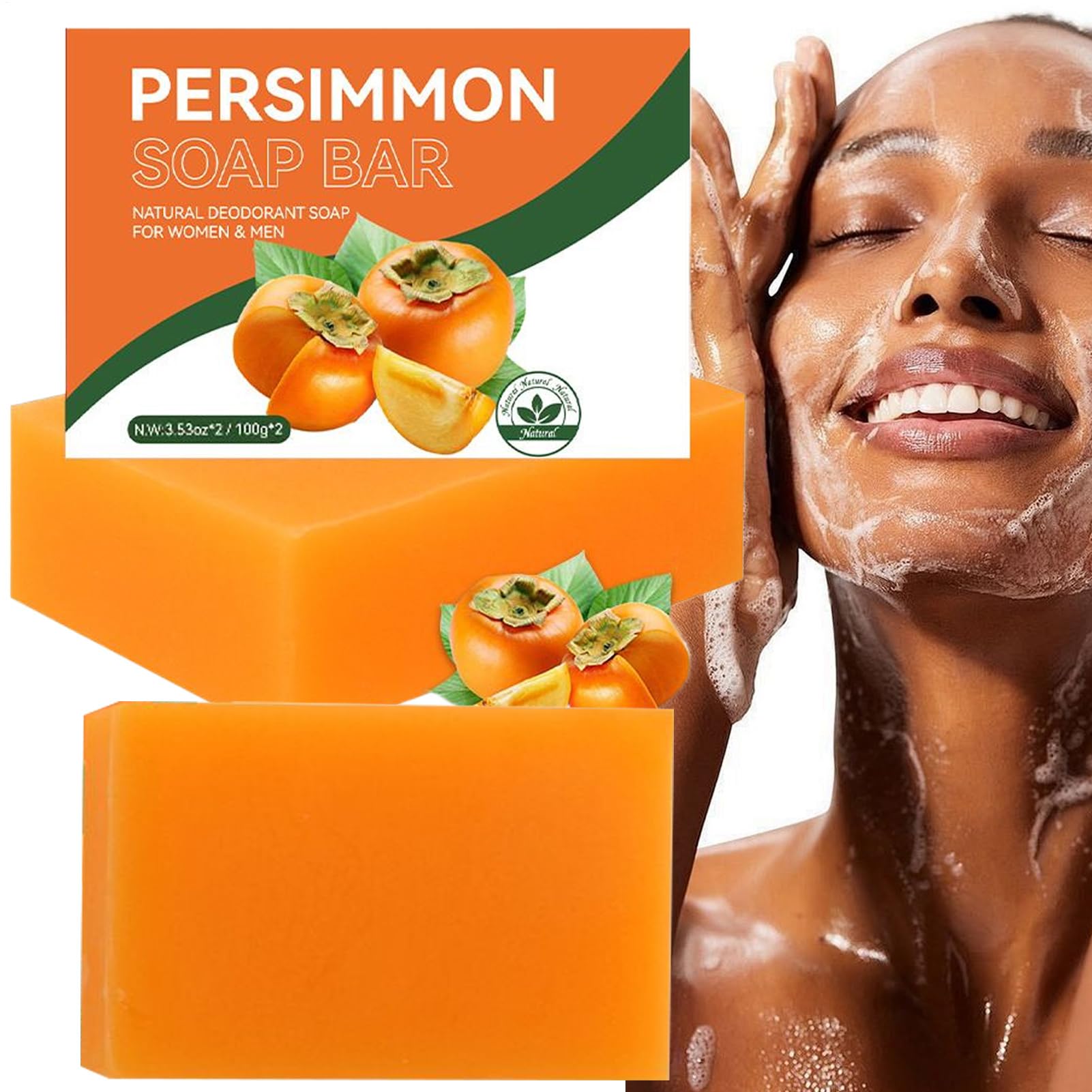 Persimmon soap is a natural shower gel and odor eliminator designed for both women and men. It offers purifying and deodorizing benefits while providing skincare properties such as moisturizing and brightening. Ideal for underarms, inner thighs, the bikini area, and smelly feet, this soap ensures cleansing without harmful substances. Its formula naturally refreshes and revitalizes your skin. Features: Net Contents: 100g x 2 Package Contents: 2 x Persimmon Soap Notes: 1. Due to different monitor and lighting effects, the actual color of the item may be slightly different from the color shown in the pictures. 2. Please allow for slight measurement deviation due to manual measurement. SAFETY WARNING Not applicableSatin Texture: Long-lasting comfort thanks to the non-drying formula with a satin finish. Enriched with natural active ingredients that neutralize odors without irritating the skin. Daily Skin Nourishment: The formula supports daily skin nourishment, prevents dryness with regular use, preserves long-lasting freshness, and effectively targets rough areas for smoother, softer results. Designed to nourish the skin every day, it moisturizes without drying, visibly improving the condition of rough areas for an even texture and a pleasant feel over time. Relaxing Moment: Gentle cleansing foam provides thorough body cleansing. Combined with a purifying action, this persimmon soap is non-irritating and safe even for the most delicate skin. Transforms bath time into a soothing ritual. Purifying Botanical Care: Combines moisture control and sebum regulation for balanced skin. Gently unclogs pores with plant-based active ingredients, ideal for daily care while preserving skin comfort. Age Protection: Persimmon soap offers comfort and skincare for all skin types, gentle and safe from birth. Ideal for family bath routines thanks to its mild formula free of irritating synthetic substances.Savon Pour Odeur Âgée - Savon Douche Neutralisant les Odeurs - Neutralisant d'Odeurs Produits Naturels Éclaircissant Cutané Pour Hommes Femmes Aisselles Zones IntimesDESCRIPTION DU PRODUIT DESCRIPTION DU PRODUIT Le savon à la kaki est un gel douche naturel et un éliminateur d'odeurs conçu pour les femmes et les hommes. Il offre des avantages purifiants et désodorisants tout en procurant des propriétés de soin de la peau telles que l'hydratation et l'éclaircissement cutané. Idéal pour les aisselles, les cuisses intimes, la zone du maillot et les pieds odorants, ce savon assure un nettoyage sans substances nocives. Sa formule rafraîchit et revitalise votre peau naturellement. Caractéristiques: Contenu net: 100gx2 Liste de colisage: 2 x savon de kaki Notes: 1. En raison des différents effets du moniteur et de la lumière, la couleur réelle de l'élément peut être légèrement différente de la couleur indiquée dans les . 2. Veuillez pardonner une légère déviation de mesure due à la mesure manuelle. AVERTISSEMENT DE SÉCURITÉ N'est pas applicableTexture Satinée : Confort prolongé grâce à la formule non desséchante au fini satiné. Enrichie d'actifs naturels neutralisant les odeurs sans irritation pour la peau. Nutrition Quotidienne Peau: La formule soutient la nutrition cutanée quotidienne, évite la sécheresse lors d'applications régulières, préserve la fraîcheur prolongée et cible efficacement les zones rugueuses pour des résultats plus lisses et doux. Conçue pour nourrir la peau chaque jour, elle hydrate sans dessécher, améliorant visiblement l'état des parties rugueuses pour une texture uniforme et un toucher agréable au fil du temps. Moment de Détente : Mousse nettoyante douce offrant un nettoyage cutané corporel minutieux. Associée à une action purifiante, ce savon au kaki est non irritant et sûr même pour les peaux les plus délicates. Transforme le bain en rituel apaisant. Soin Botanique Purifiant: Allie contrôle de l'hydratation et régulation du sébum pour une peau équilibrée. délicatement les pores grâce à des actifs végétaux, idéal pour les soins quotidiens tout en préservant le confort cutané. Protection Âges : Savon Persimmon offre confort et soin cutané pour types de peaux, non agressif et sûr dès la naissance. Idéal pour les routines de bain familiales grâce à sa formule douce sans substances synthétiques irritantes.