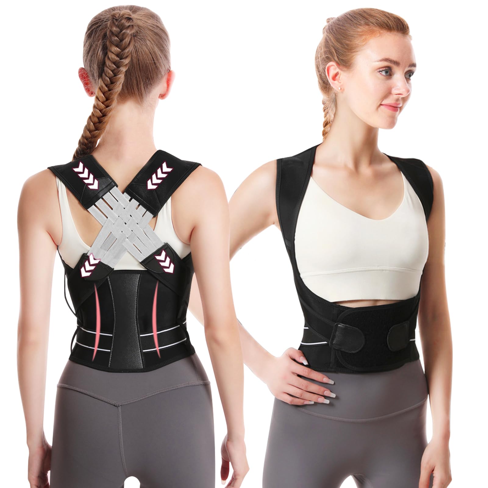 Increases your confidence- Our back straight trains your attitude and promotes muscle memory to give you an upright and confident appearance.Ideal for people with a light hump, crooked head or those who work at the desk for a long time.Strong support- Double y -shaped crusade belts and lordosis support bars help you to open your shoulders and stretch your back.Offers strong support for your upper back, lower back and stomach.Improve problems with round shoulders, hump and forward head.Air -permeable material- The posture trainer is made of breathable and pleasantly soft material.Even with long wearing in summer, you don't have to worry about excessive sweating.Thanks to the thin material, the back support belt is almost invisible under the clothing.Comfortable and adjustable- With ergonomically designed, adjustable and soft shoulder straps as well as durable Velcro fasteners.Simply adaptable for an optimal fit and keeping.Our back trainer is suitable for men and women of different body sizes.After wearing there are no unpleasant sensations in the armpits.Achieve a more upright posture- Do you suffer from humpback formation and neck pain due to poor postureOur back support belt ""back straight"" relieves the pressure in the key areas of the back and supports both the upper and lower back to relieve shoulder and lower back pain.