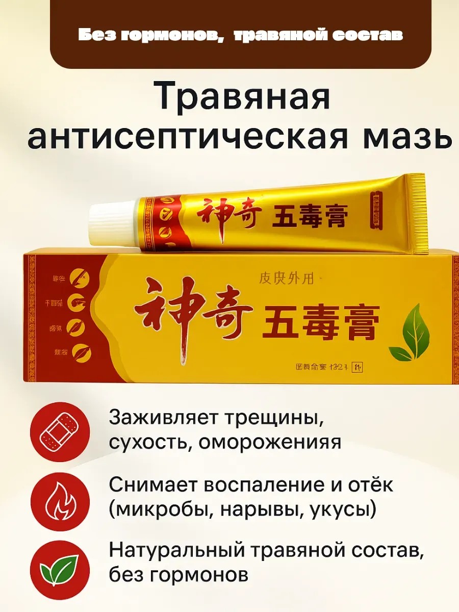 Откройте для себя уникальное средство — травяная мазь заживление трещин 20гр, созданное специально для заботы о вашем теле. Эта натуральная китайская косметика сочетает в себе древние традиции и современные технологии, чтобы обеспечить вашему телу максимальный комфорт. Подходит для массажа, ухода за кожей ног, рук и других частей тела.Этот лечебный бальзам станет вашим незаменимым помощником в борьбе с дискомфортом мышц, суставов и спины. Специальная формула помогает уменьшить боли в пояснице, коленях и шее, обеспечивая согревающий или охлаждающий эффект при необходимости. Мазь идеально подходит как для пожилых людей, так и для спортсменов благодаря своим полезным свойствам.Крем обладает разогревающим действием, что делает его отличным средством при судорогах или после интенсивных физических нагрузок. Лечебный состав на основе натуральных компонентов способствует быстрому заживлению трещин на коже, улучшению ее состояния и восстановлению природной мягкости.Эта китайская спецмазь также используется как обезболивающий бальзам при остеохондрозе или болях в мышцах. Удобный тюбик позволяет легко дозировать средство без лишних усилий. Благодаря этому продукту вы сможете быстро снять неприятные ощущения после тренировок или активного дня.Средство можно применять не только для лечения кожи или устранения судорог, но и для профилактики различных проблем суставов. Универсальность этой мази делает ее отличным выбором для массажа мышц шеи, спины или коленей. Она обладает согревающим эффектом "тигрового" типа — это мягкое тепло поможет расслабиться после напряженного дня.Китайские традиционные рецепты вдохновили создание этого средства с натуральными компонентами. Крем подходит для лечения мелких повреждений кожи рук и ног благодаря увлажняющему действию травяных экстрактов. Его можно использовать ежедневно как часть вашего ухода за телом.