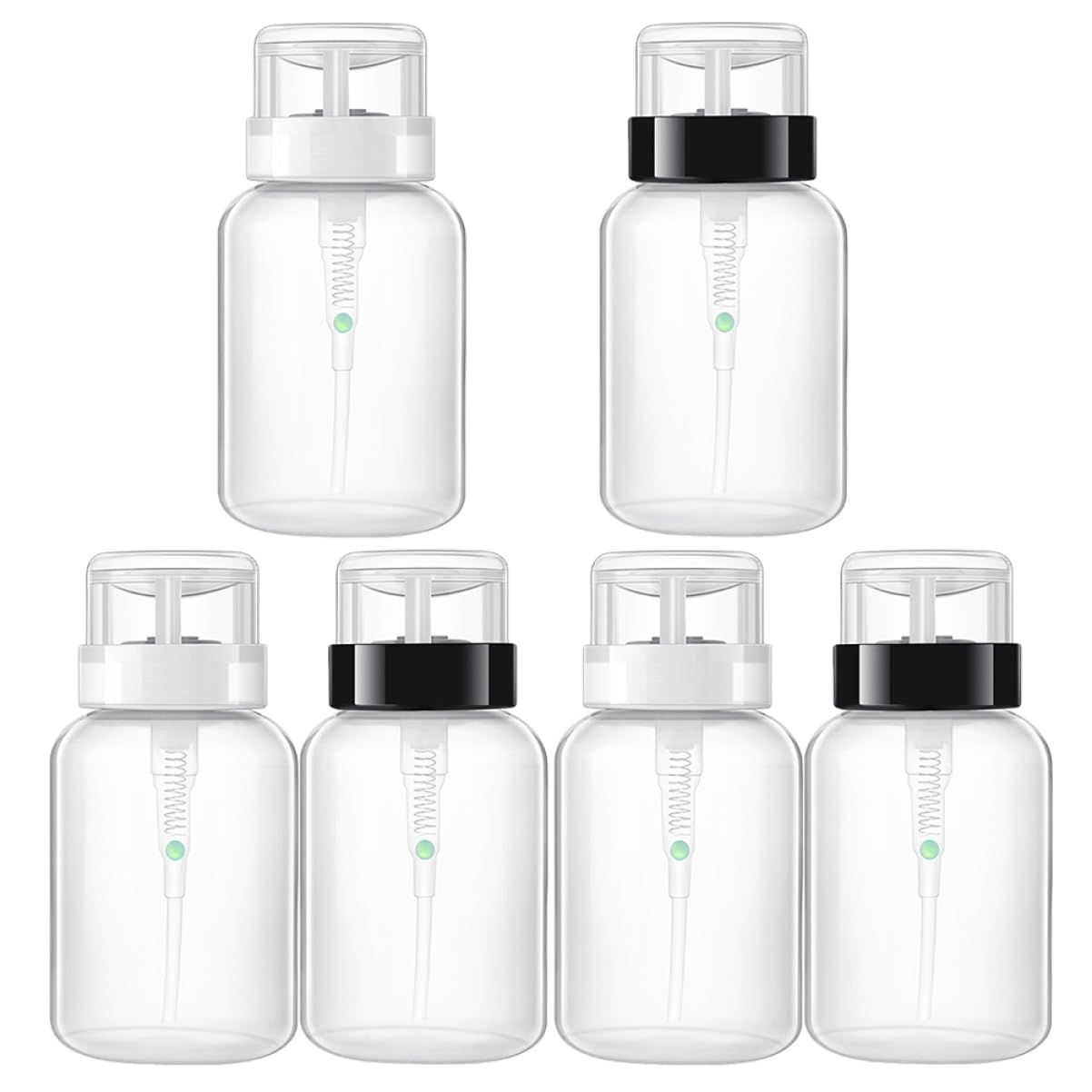 SOESFOUFU Set of 6 Refillable 210ml Makeup Remover Bottles with Airless Pump for Travel (Black)
