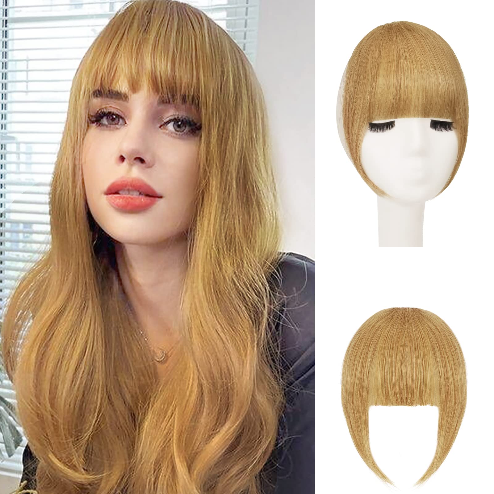 Sofeiyan bangs clip in 100% remy real hair fringe bangs one piece human hair clip in pony fringe extensions natural bangs with temple hair parts real hair hair extension for women sat bangs warm blonde