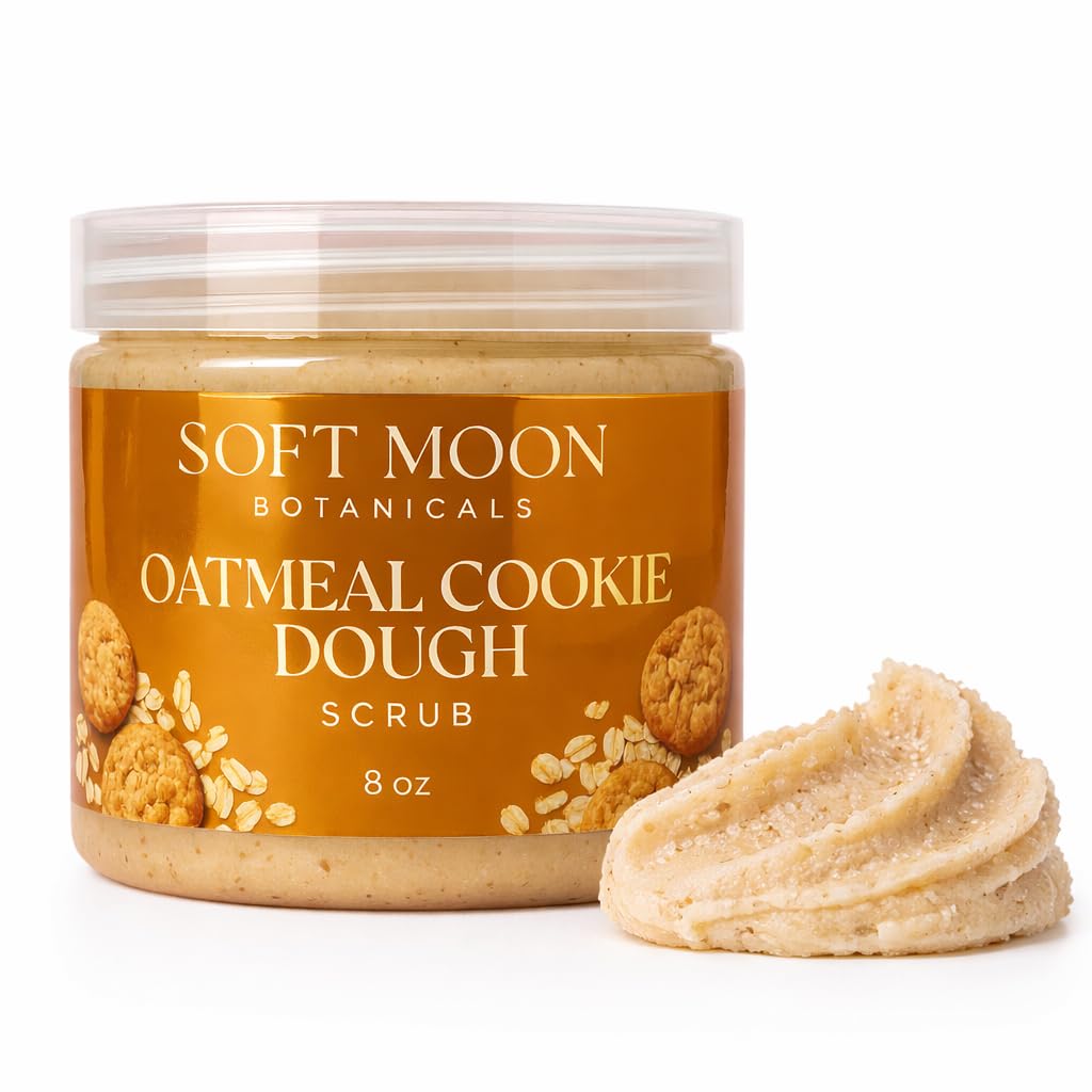 GENEROUS SIZE: Comes in an 8 oz jar providing ample product for multiple uses to exfoliate, soften, and pamper your skin from head to toe. SMALL-BATCH HANDCRAFTED: Each scrub is carefully made in small batches by Soft Moon Botanicals to ensure maximum freshness, quality, and effectiveness. CLEAN BEAUTY FORMULA: Cruelty-free, phthalate-free, and paraben-free formulation made with gentle botanical ingredients your skin will love without harsh synthetic plasticizers or unnecessary preservatives. GENTLE EXFOLIATION: Formulated with natural oatmeal particles that gently buff away dead skin cells while nourishing and moisturizing for soft, smooth, radiant skin. OATMEAL COOKIE DOUGH SCRUB: Indulge in a sweet-scented body scrub with a thick, creamy texture whipped to feel like real cookie dough for a luxurious exfoliating experience.
