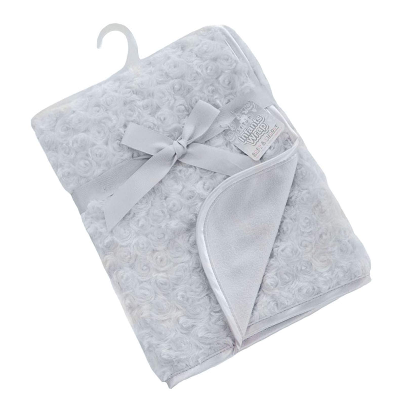 Soft Touch Baby Boys Girls Rosebud Fleece Blanket Wrap Shawl Satin Trim & Fleece Back FBP66 (Grey)
