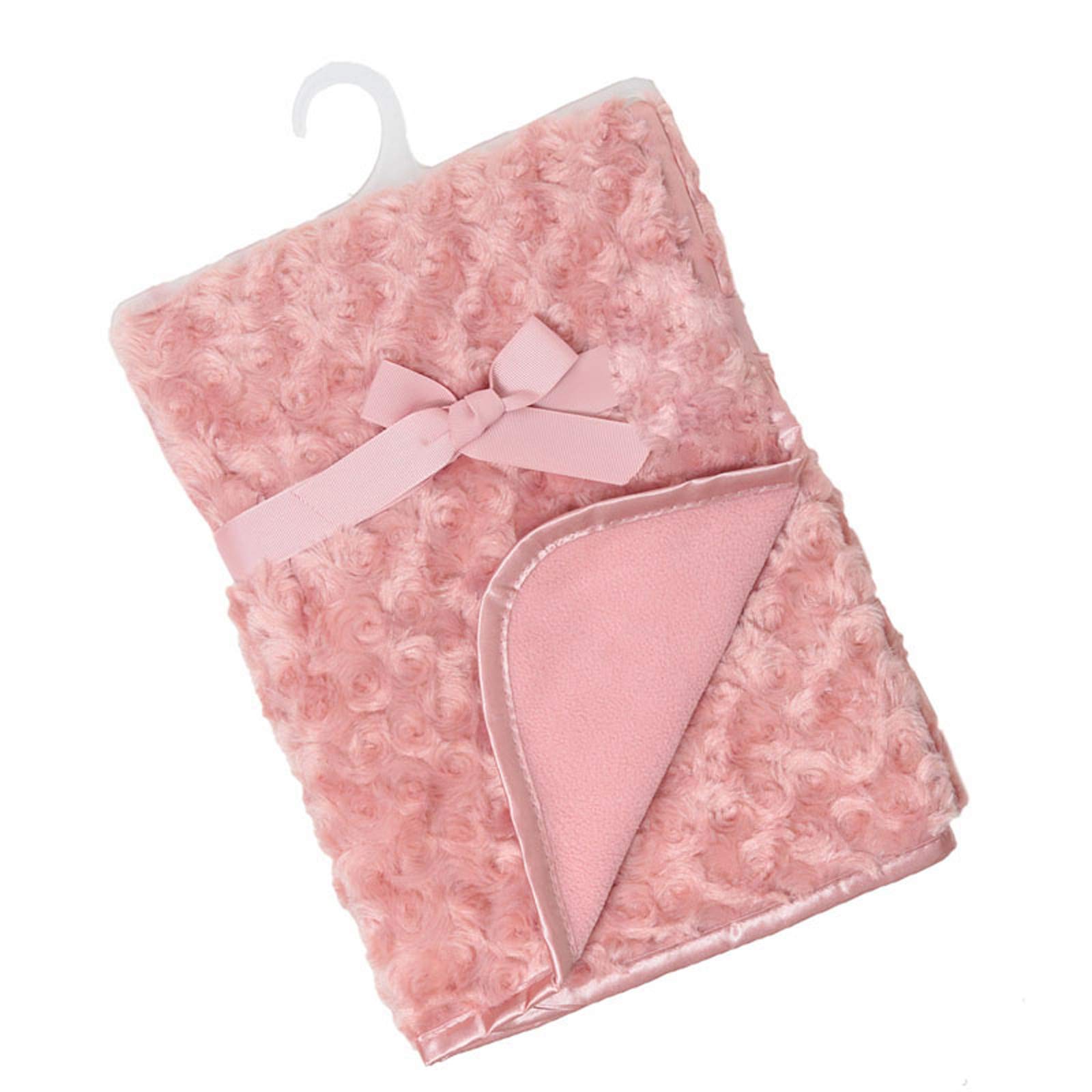 Soft Touch Baby Boys Girls Rosebud Fleece Blanket Wrap Shawl Satin Trim & Fleece Back FBP66 (Rose Gold)