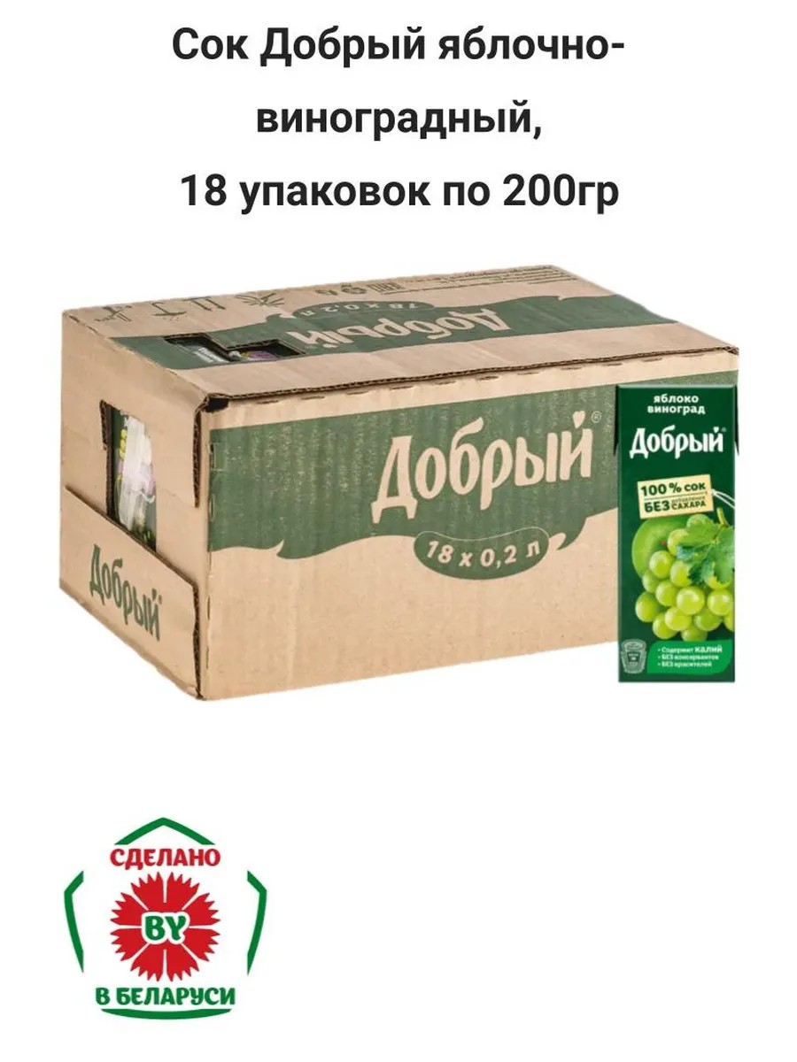 Сок «Добрый» яблочно-виноградный, 18х200 мл