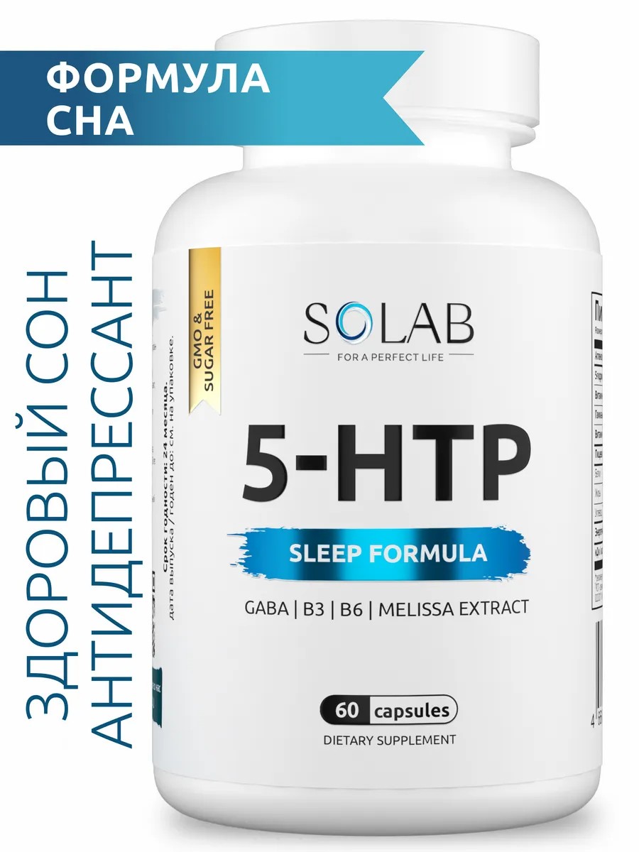 Комплекс «Формула сна» от SOLAB — это натуральный аминокислотный комплекс, который используют как безопасный антидепрессант. Он не вызывает привыкания и не имеет побочных эффектов. В состав комплекса входят Гамма-аминомасляная кислота (ГАМК), Гидрокситриптофан (5-htp), Витамин В6 и В3.
