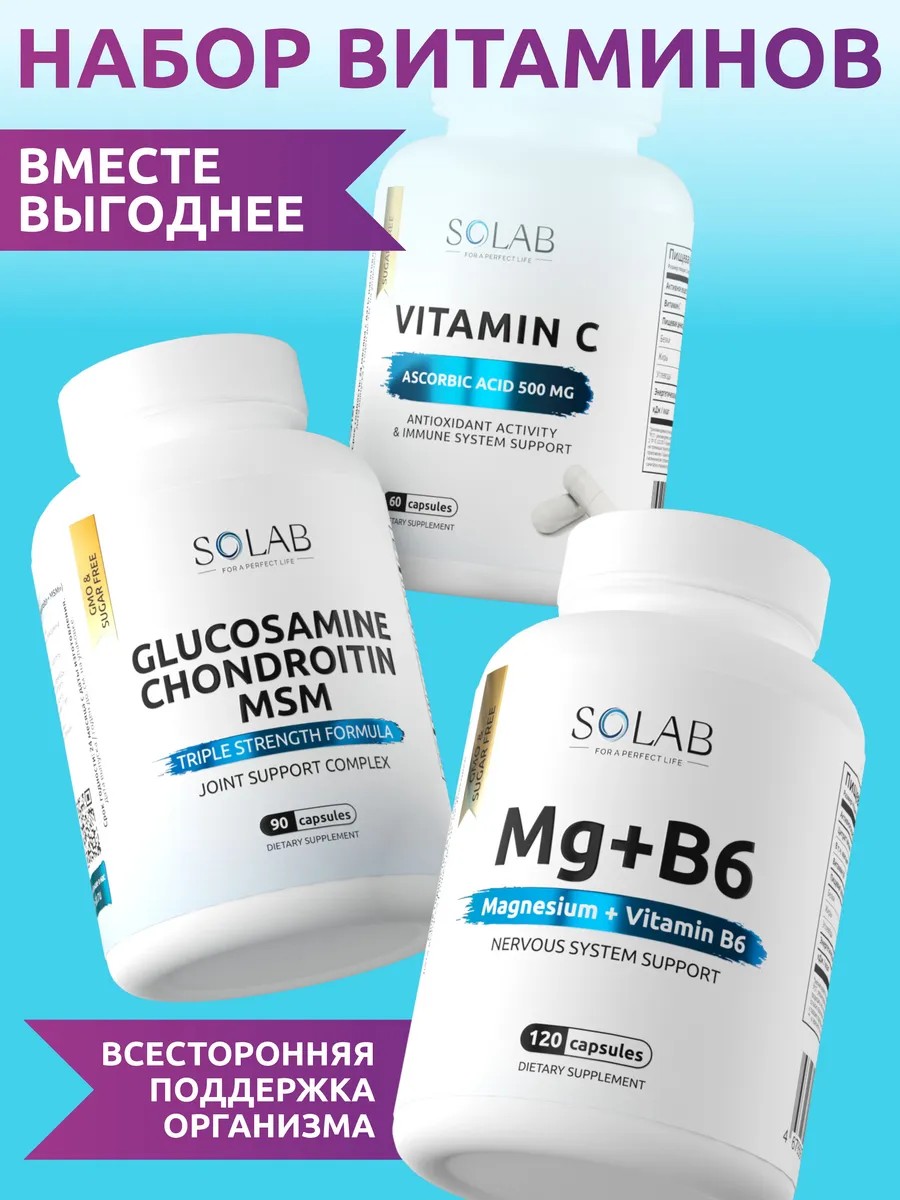 Набор витаминов с эффективным комплексным действием: помогает сохранить молодость, улучшить состояние суставов и связок, укрепить иммунитет, держать эмоции под контролем, заряжаться энергией каждый день. Набор состоит из трех продуктов: Глюкозамин+хондроитин+МСМ (90 капсул); Магний+В6 (120 капсул) и Витамин С (60 капсул). Базовый набор нутрицевтиков обеспечит всестороннюю поддержку организма.