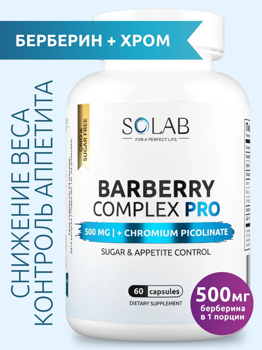 Берберин комплекс PRO с хромом для похудения, 60 капсул