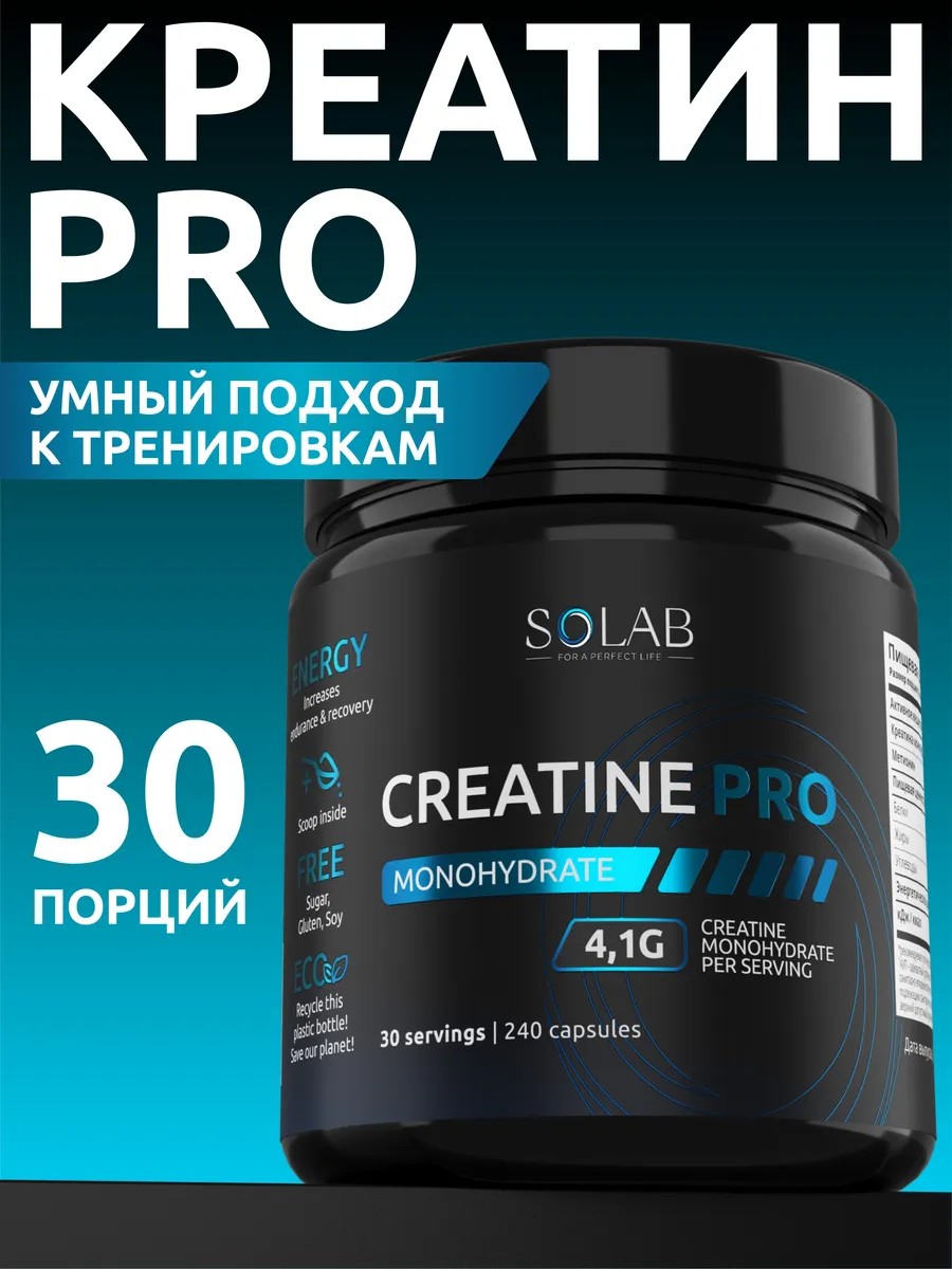 Креатин моногидрат в капсулах от SOLAB — это эффективное спортивное питание для спортсменов, которое позволит повысить эффективность тренировок, снизить боль и набрать мышечную массу. В 1 порции (8 капсул) содержится Creatine Monohydrate 4,1 гр и метионин 400 мг.