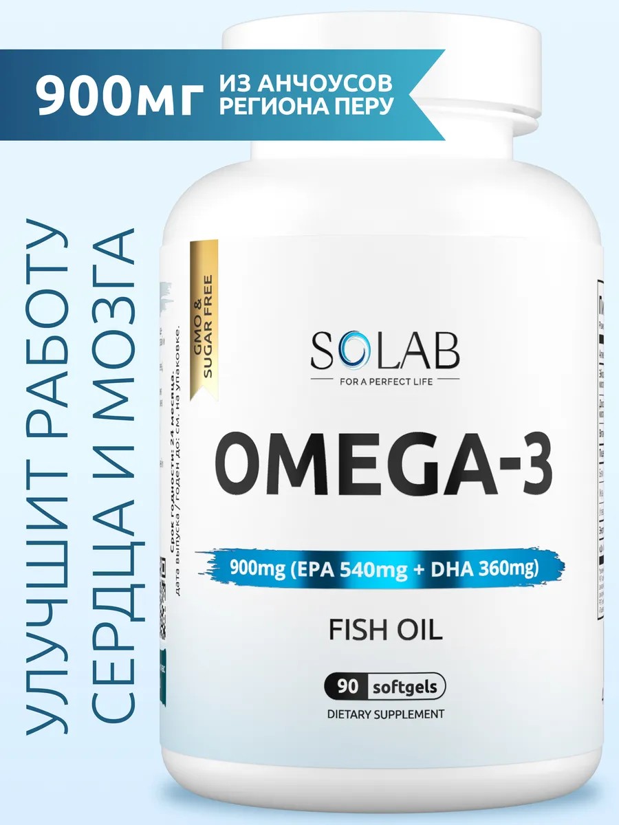 SOLAB Омега 3 в капсулах витамины 900 мг