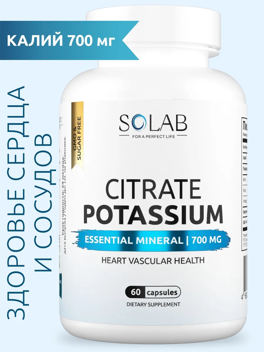 SOLAB Калий цитрат витамины для сердца и сосудов