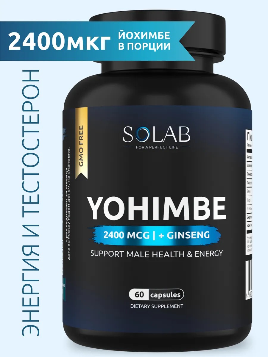 Комплекс экстрактов Йохимбе и Женьшеня от SOLAB — мощный источник жизненных сил и энергии для мужчин, который повышает либидо и тонизирует организм.