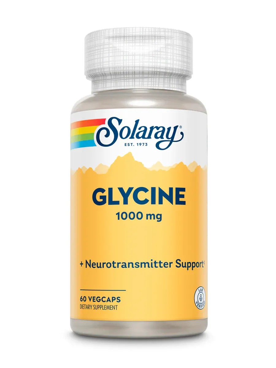 Solaray Glycine is a dietary supplement containing free-form glycine for optimal absorption. Glycine is an essential amino acid that is involved in protein production, supports nervous system health, promotes better sleep, and enhances cognitive function. It also helps maintain healthy joints, ligaments, and liver tissue. Directions: Take 1 capsule daily on an empty stomach with water, or as recommended by a healthcare professional. Ingredients: Glycine (free-form) - 1000 mg.