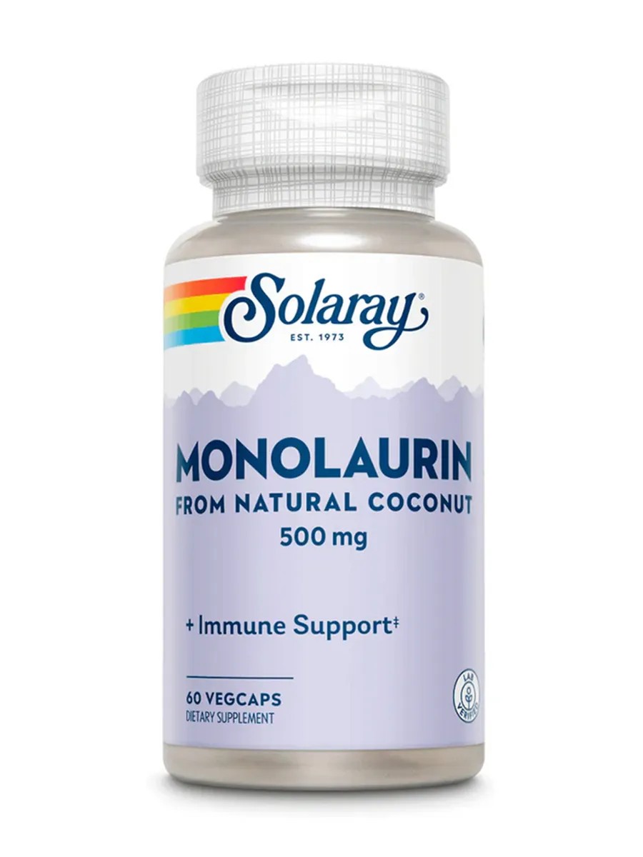 Solaray Monolaurin 500mg is a dietary supplement containing monolaurin, a monoester of lauric acid naturally found in coconut oil and breast milk. Monolaurin supports the immune system with antiviral and antibacterial properties. Directions: Take 1 capsule twice daily with meals or a glass of water. Ingredients: Monolaurin (glyceryl monolaurate [GML]) (coconut) 500mg