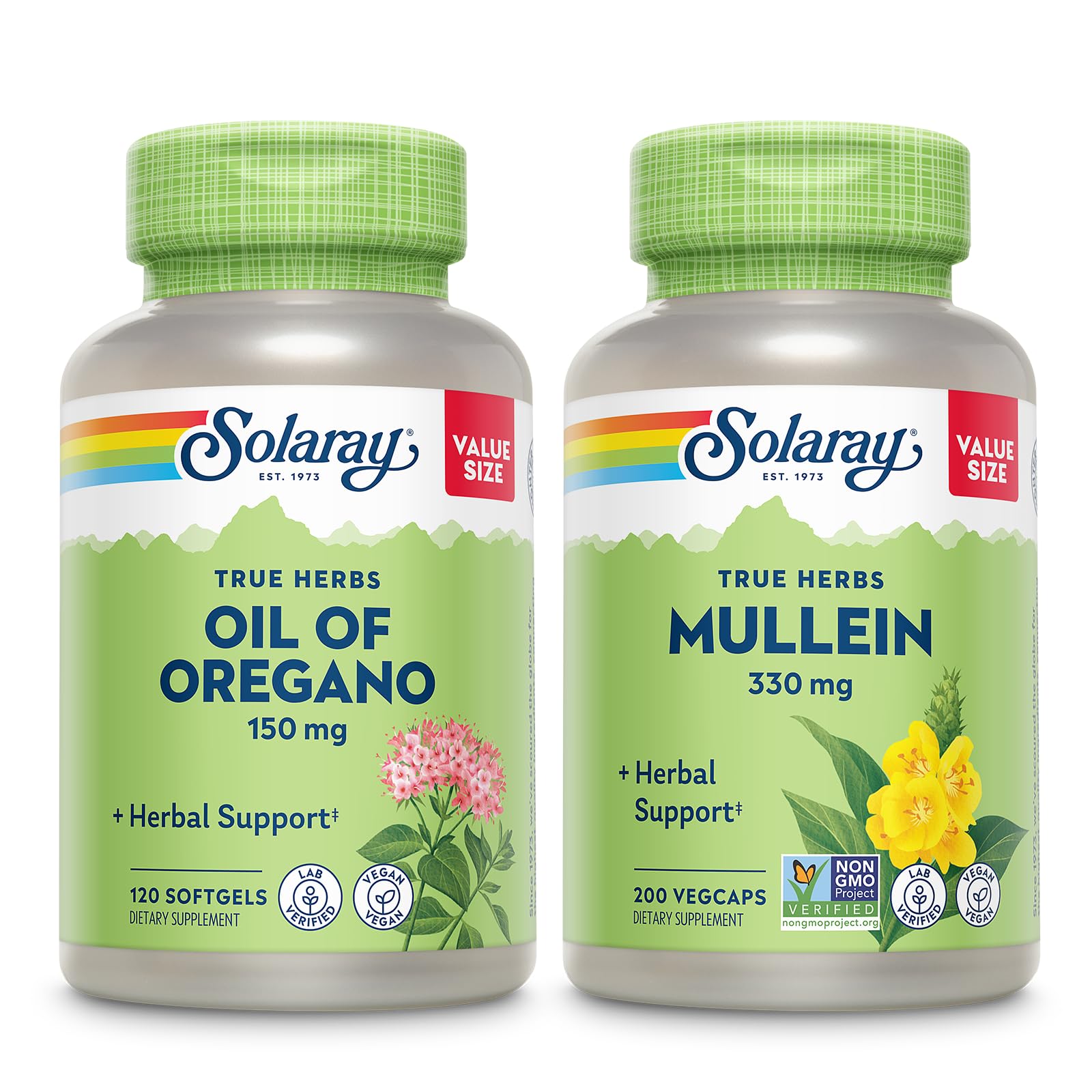 SOLARAY Oil of Oregano Softgels 150 mg and Mullein Leaf 330 mg - Wellness Support Bundle - Oregano Oil and Mullein Capsules for Overall Health Support - Vegan 60-Day Guarantee 120ct/180ct