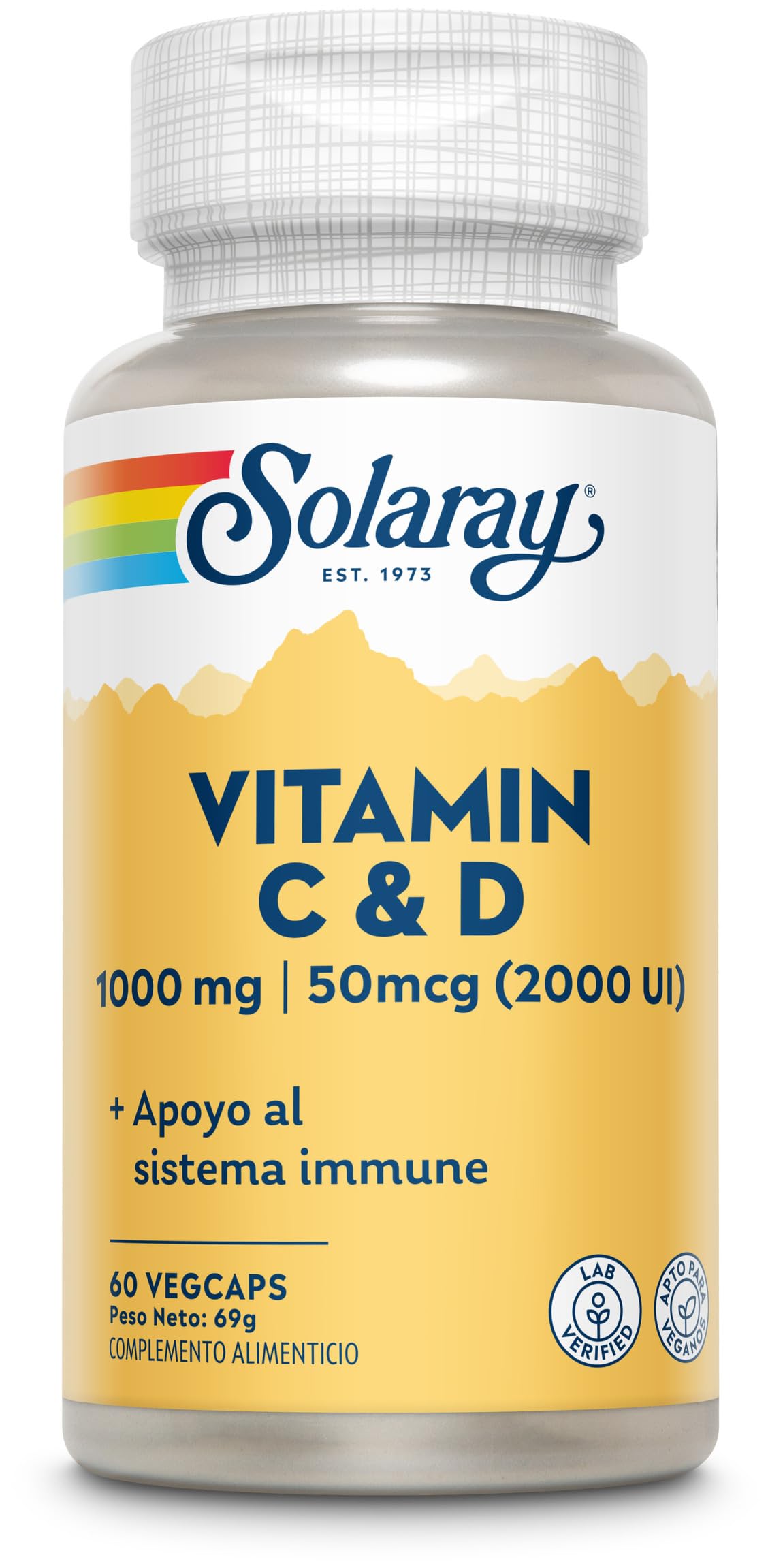 SOLARAY Vitamin C D, 1000 mg C 50Mcg D, convient aux végétariens, Vegcaps 200 g, 60 unités