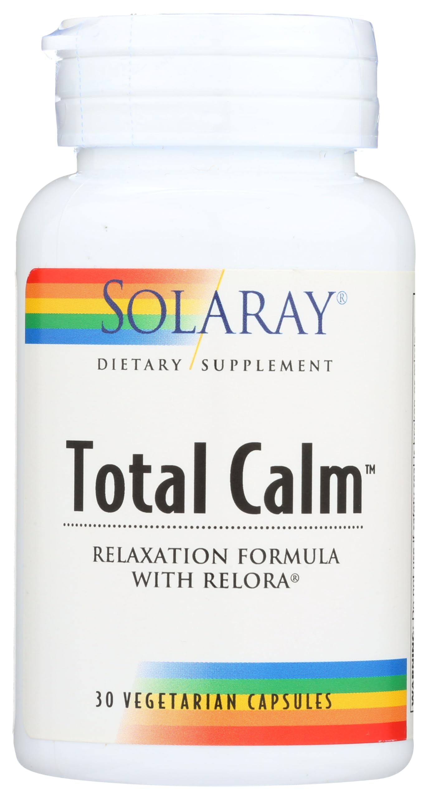 Solaray Total Calm Relaxation Formula contains 750 mg of Relora (proprietary blend of Magnolia officinalis and Phellodendron amurense bark extracts) mixed with 50 mg of L-Theanine.