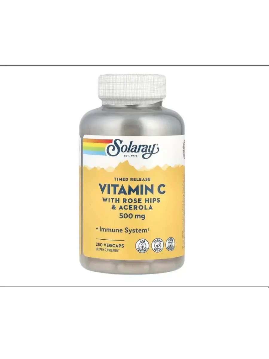 Откройте для себя уникальную добавку Solaray Vitamin C with Rose Hips & Acerola, которая предлагает высокоэффективную поддержку вашего организма. Каждая капсула содержит 500 мг витамина C, что делает её мощным средством для укрепления иммунной системы и защиты клеток от оксидативного стресса. Упаковка включает 250 капсул, обеспечивая длительное использование и экономичность. Особенностью этой формулы является сочетание витамина C с экстрактами шиповника и ацеролы. Эти натуральные компоненты усиливают действие основного ингредиента благодаря содержанию природных флавоноидов и антиоксидантов. Это делает добавку особенно полезной для поддержания здоровья кожи, суставов и сердечно-сосудистой системы. Витамин С играет ключевую роль в синтезе коллагена — белка, который необходим для поддержания эластичности кожи и здоровья соединительных тканей. Включение аскорбата кальция в состав обеспечивает дополнительную пользу за счёт улучшения усвоения минералов организмом. Solaray Vitamin C with Rose Hips & Acerola не содержит искусственных добавок или консервантов, что гарантирует его безопасность при ежедневном использовании. Капсулы легко принимать ежедневно благодаря их удобному формату — это отличный выбор для тех, кто стремится заботиться о своём здоровье на постоянной основе. Эта добавка станет вашим надежным союзником в борьбе с инфекциями и стрессом, поддерживая общее состояние организма на высоком уровне благополучия. Включите её в свою повседневную жизнь для максимальной антиоксидантной защиты и укрепления иммунитета.