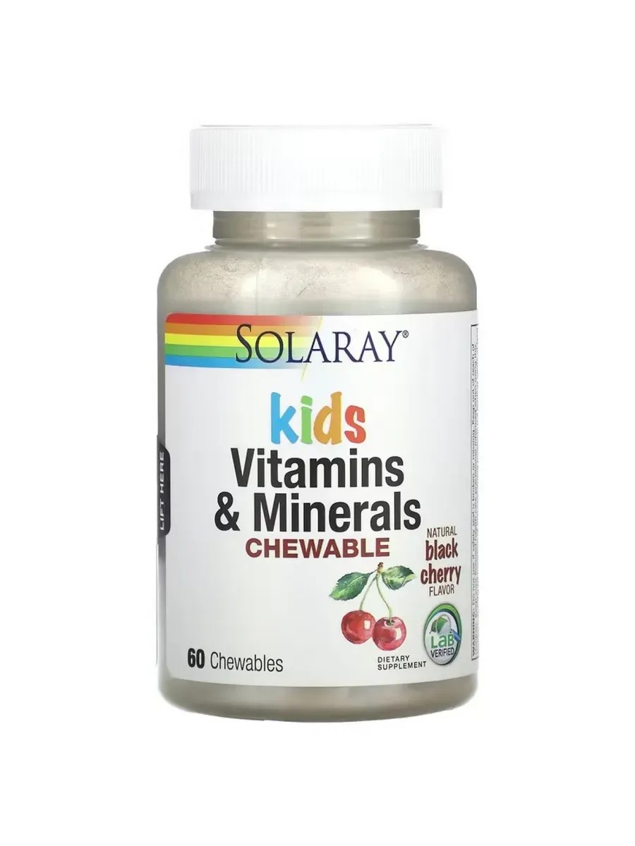 Вы можете быть уверены, что витамины и минералы Solaray для детей не содержат искусственных ароматизаторов, красителей и дрожжей. Наши удобные жевательные таблетки с восхитительным натуральным вкусом черешни призваны сделать так, чтобы дети принимали эту добавку с удовольствием.