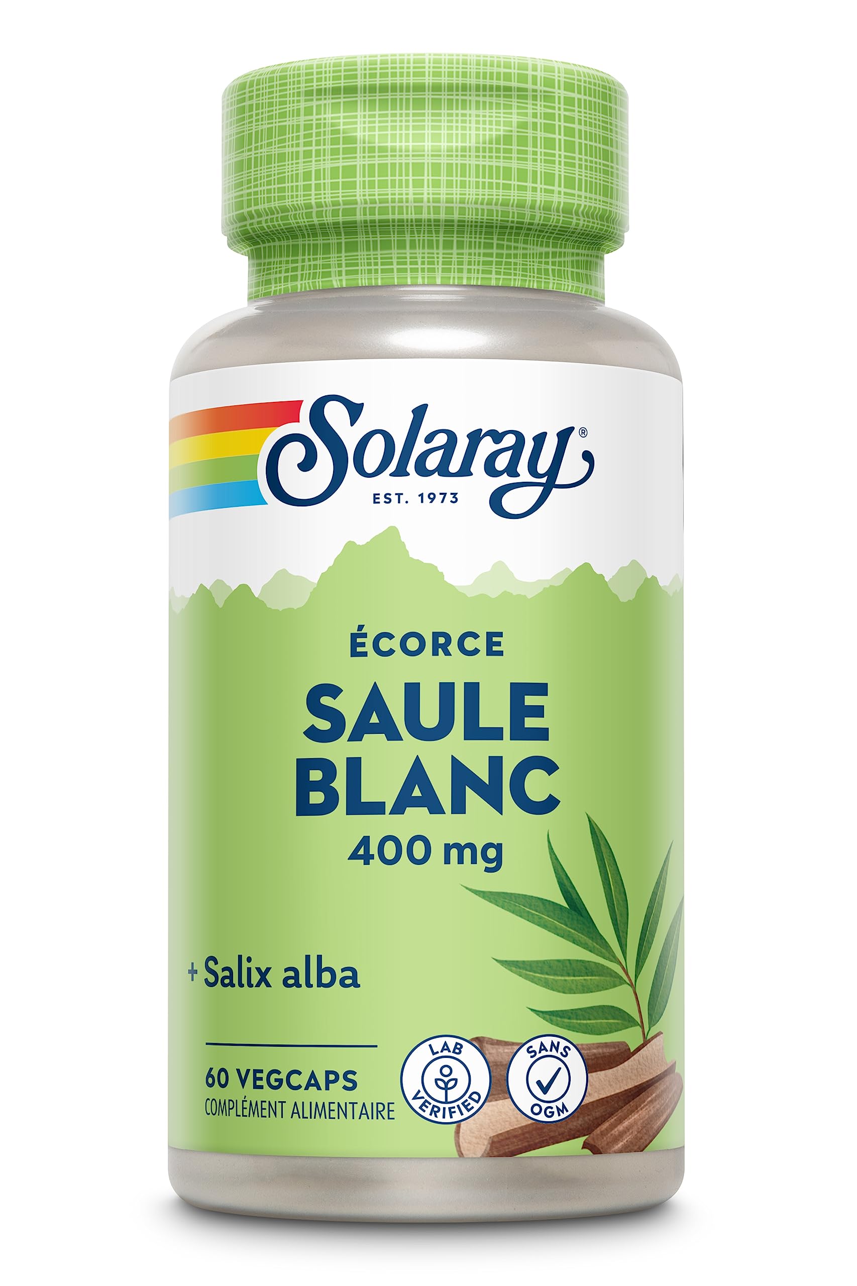 This product is based on Salix alba (White Willow). The bark of this tree contains salicin, a molecule close to acetyl salicylic acid. INGREDIENTS White Willow (Salix Alba)(bark) 400 mgVegetable cellulose capsule. Anti-caking agent extracted from rice, white willowVegetable cellulose capsule. Vegetable cellulose capsule. High quality, energy-yielding and guaranteed purity. Food supplements made from natural products from SOLARAY. Ce produit est à base de Salix alba (Saule blanc). L'écorce de cet arbre contient de la salicine, une molécule proche de l'acide acétyle salicylique. INGRÉDIENTS Saule Blanc (Salix Alba)(écorce) 400 mgCapsule cellulose végétale. Anti agglomérant extrait de riz , saule blancCapsule cellulose végétale. Capsule cellulose végétale. Haute qualité, puissance énergétique et pureté garantie. Compléments alimentaires à base de produits naturels SOLARAY,.