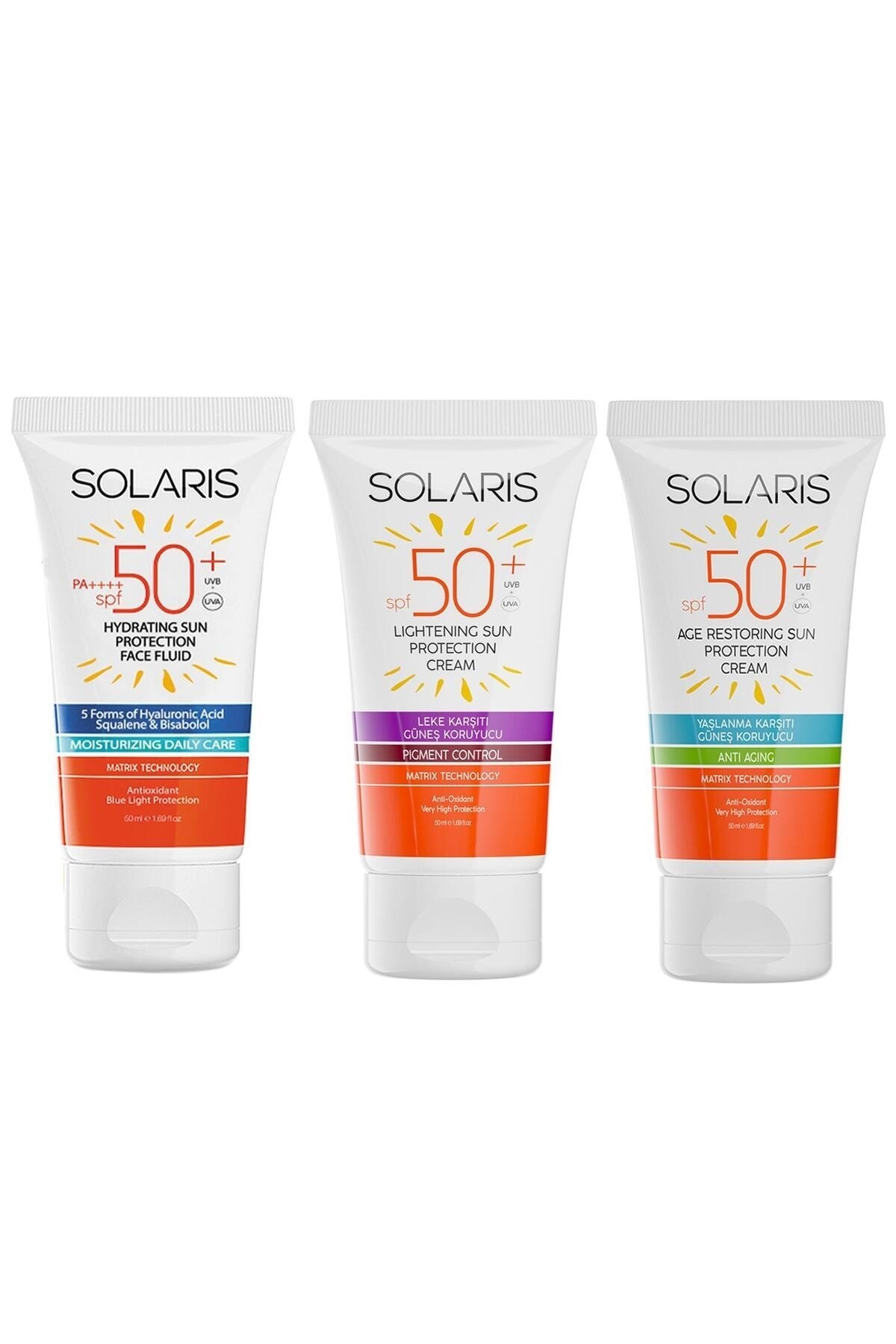 SOLARIS All Skin Types SPF 50 Sun Cream Set Anti-Stain Anti-Aging and Moisturizing