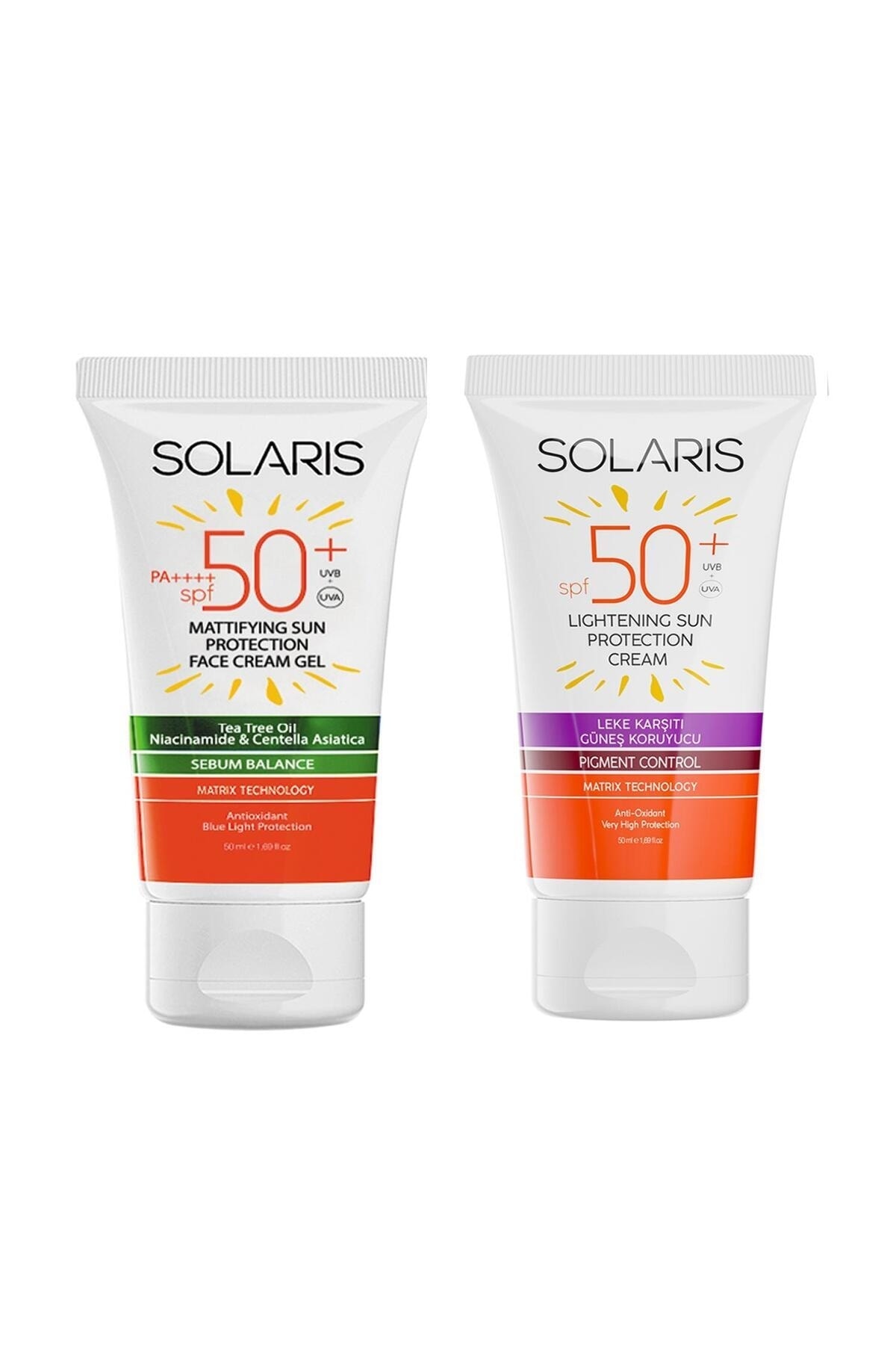 SOLARIS Gel Sun Cream for Oily Skin Types (MAT) Spf 50 (50 ML) and Anti-Spot Sun Cream Spf 50