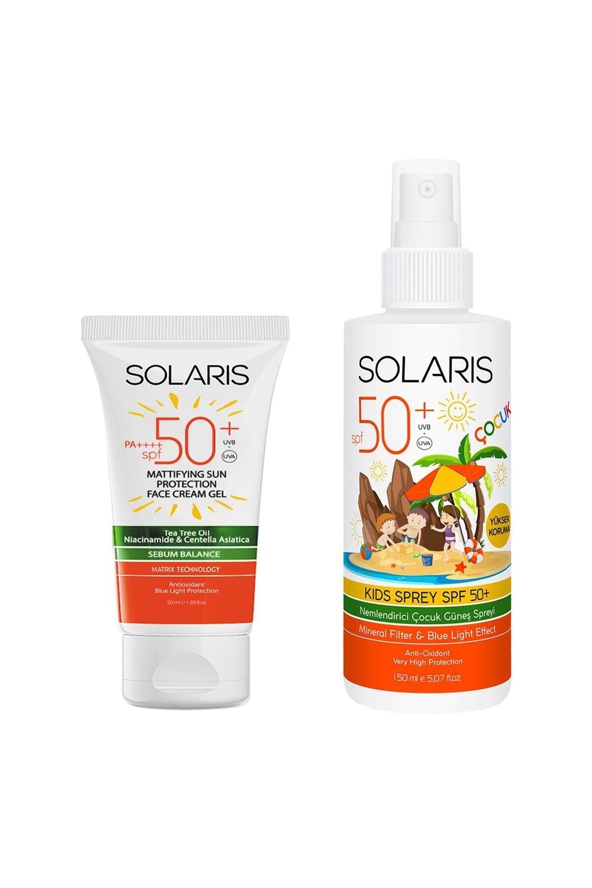 SOLARIS Gel Sun Cream for Oily Skin Types (MAT) Spf 50 (50 ML) and Children's Sun Cream Spray Spf 50