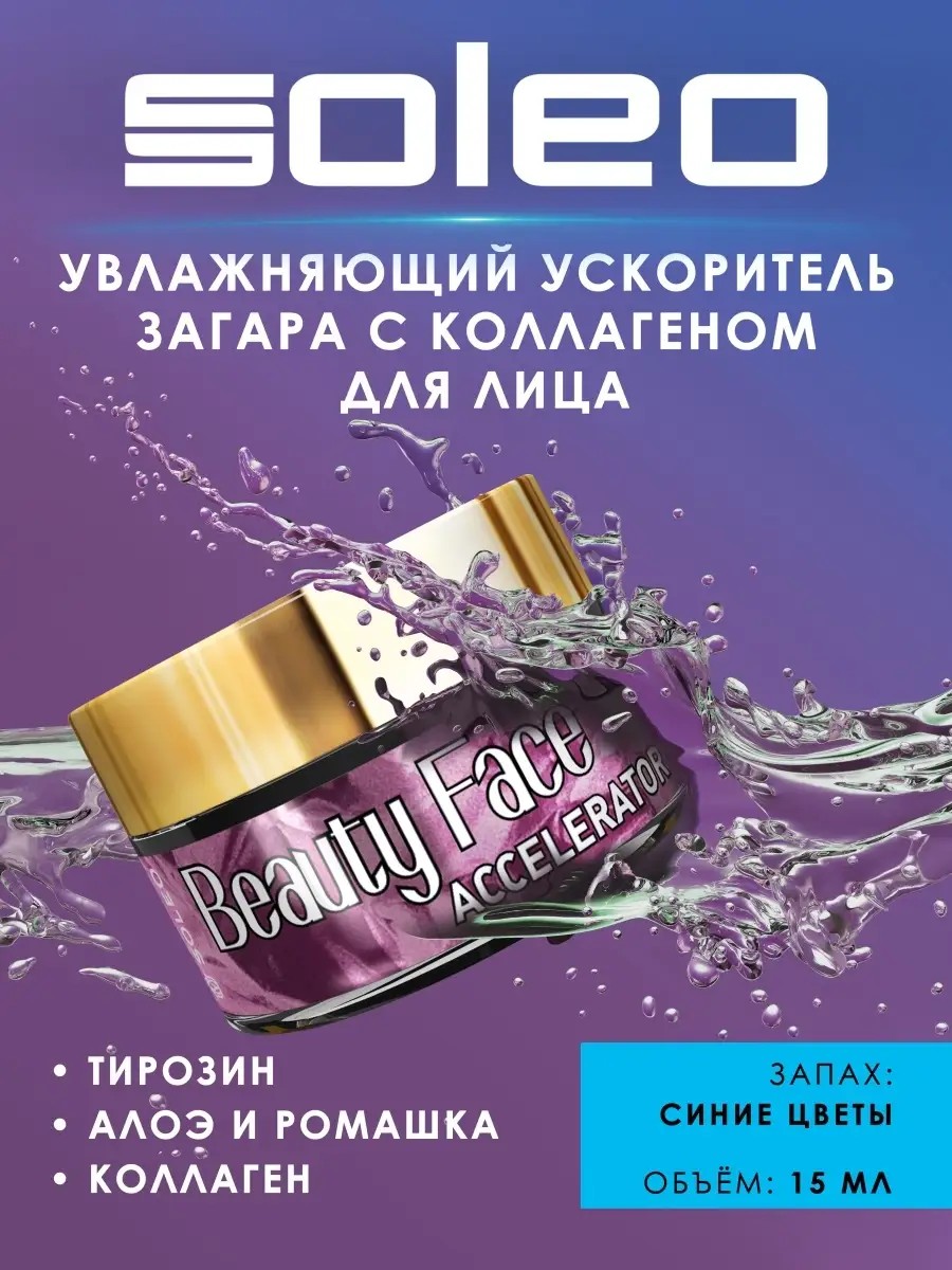 Ускоритель загара для лица Beauty Face Accelerator Soleo – это идеальное средство для тех, кто хочет быстро и безопасно получить загар. Этот крем не содержит SPF, что делает его идеальным выбором для использования в солярии или при естественном загаре. Благодаря универсальному времени нанесения, он подходит для любого типа кожи и может использоваться как до, так и после процесса загара. Состав крема включает косметическую основу, обеспечивающую мягкое и эффективное действие. Beauty Face Accelerator от Soleo – это надежное средство для достижения здорового и привлекательного загара на лице, подходящее для всех, кто стремится к красоте и здоровью.