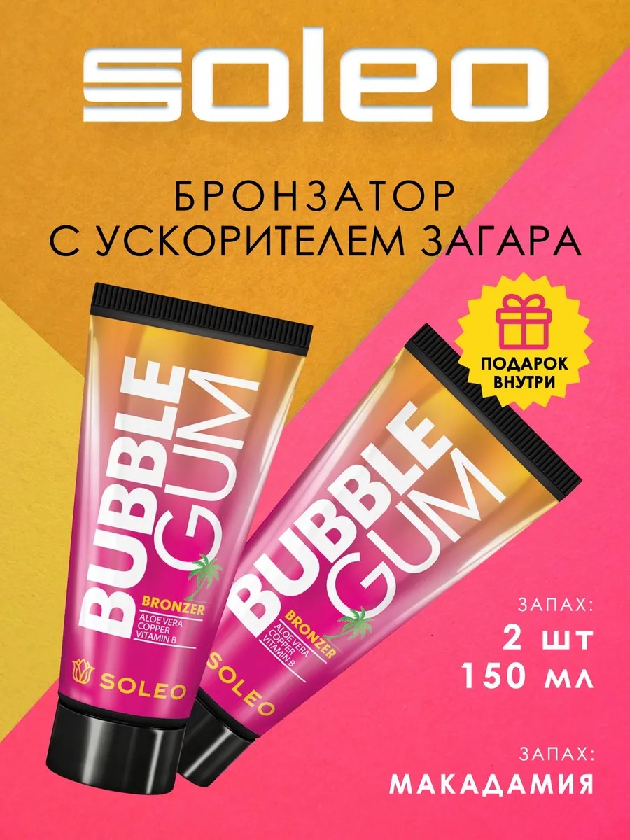 Мощный бронзатор для солярия Soleo Bubble Gum, который обеспечивает появлением красивого коричневого цвета на коже (благодаря DHA) и ускоряет создание естественного загара (тирозин). Балует кожу консистенцией, превосходным уходом, питанием (сафлоровое масло, витамин В), увлажнением (алоэ и растительные белки) и прекрасной гладкостью.Для получения красивого насыщенного оттенка предлагаем Вам следовать программе загара:- первые 3-4 сеанса загара для выработки меланина рекомендуется использовать активаторы в чистом виде,либо с натуральными косметическими бронзаторами (чтобы сразу придать коже легкий оттенок загара) и не превышать рекомендуемое время сеанса загара;- далее можно использовать крема с DHA для придания коже красивого бронзового оттенка.Именно в такой последовательности и придерживаясь программы загара Вы достигнете желаемого эффекта.