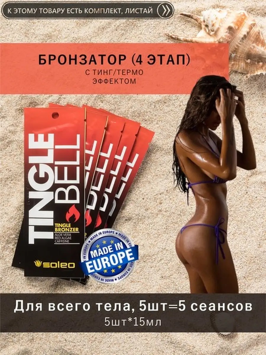 Внимание! прежде чем пользоваться кремами для загара правильно подберите подходящий Вам в зависимости от типа кожи(См. фото).В комплекте саше 5шт по 15мл(минимально-оптимальный обьем для одного сеанса 15мл).Профессиональные крема для загара SOLEO(Польша).Бронзатор Tingle Bell (ТИНГЛ / TEPMO )благодаря эффективности DHA и метил никотинату сильно ускоряет и усиливает бронзовый цвет кожи.Внимание: Появление сильного покалывания и покраснения кожи носит временный характер и исчезает примерно через 2-3часа после нанесения. Это действие улучшает кровообращение, оксигенацию и позволяет получить еще более интенсивный загар.ПРЕДНАЗНАЧЕН ИСКЛЮЧИТЕЛЬНО ДЛЯ ТЕХ, КТО УЖЕ ЗАГОРЕЛ или РЕГУЛЯРНО ЗАГОРАЕТ.БЫСТРО БРОНЗИРУЕТ КОЖУ, УСИЛИВАЕТ СТОЙКОСТЬ ЗАГАРА. ровный загар. крем для загара в солярии
