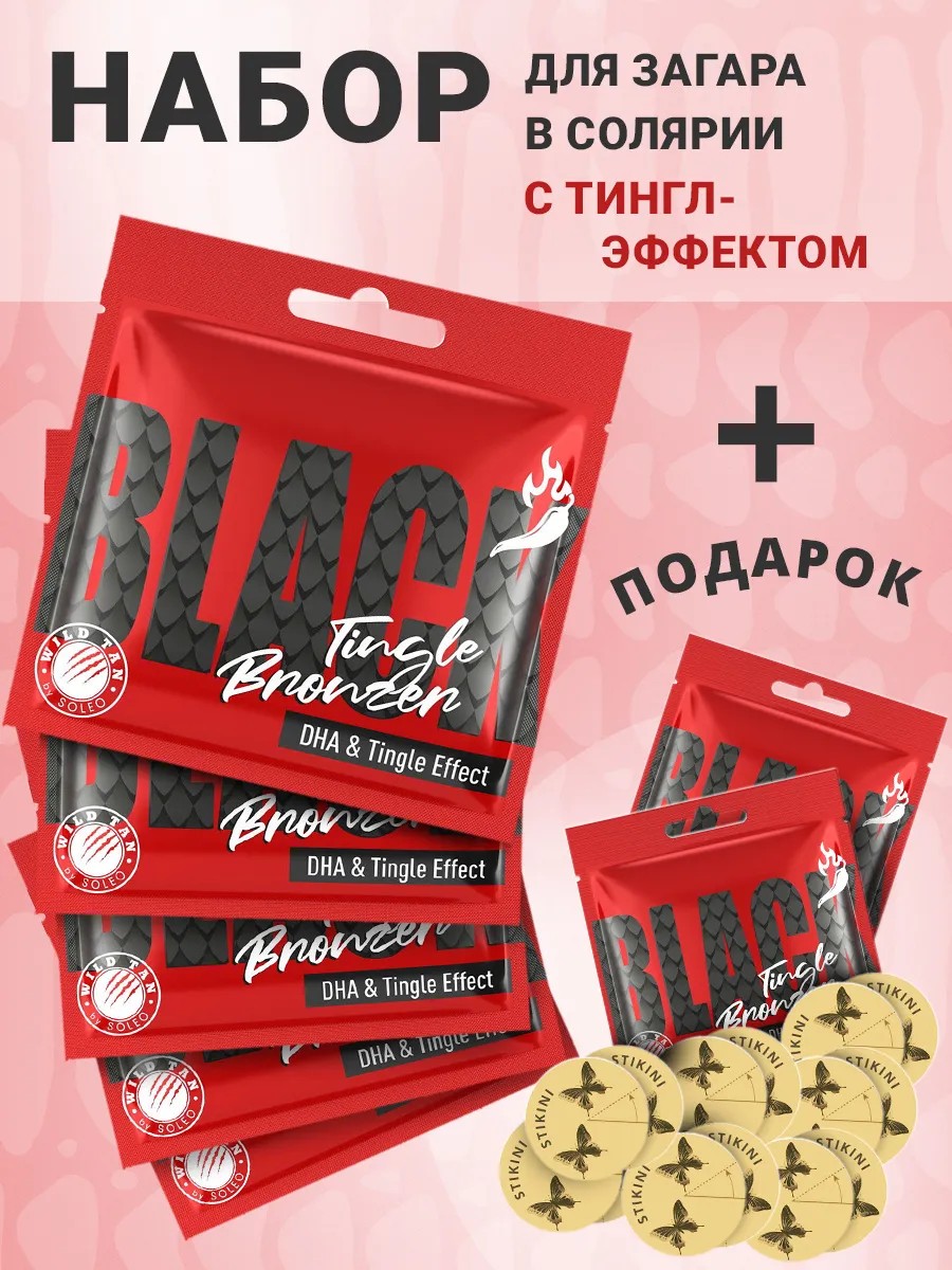 Подарок: мощный крем бронзатор с тингл-эффектом и маслом какао BLACK TINGLE BRONZER (15 мл) - 2 шт; стикини - 7 пар!