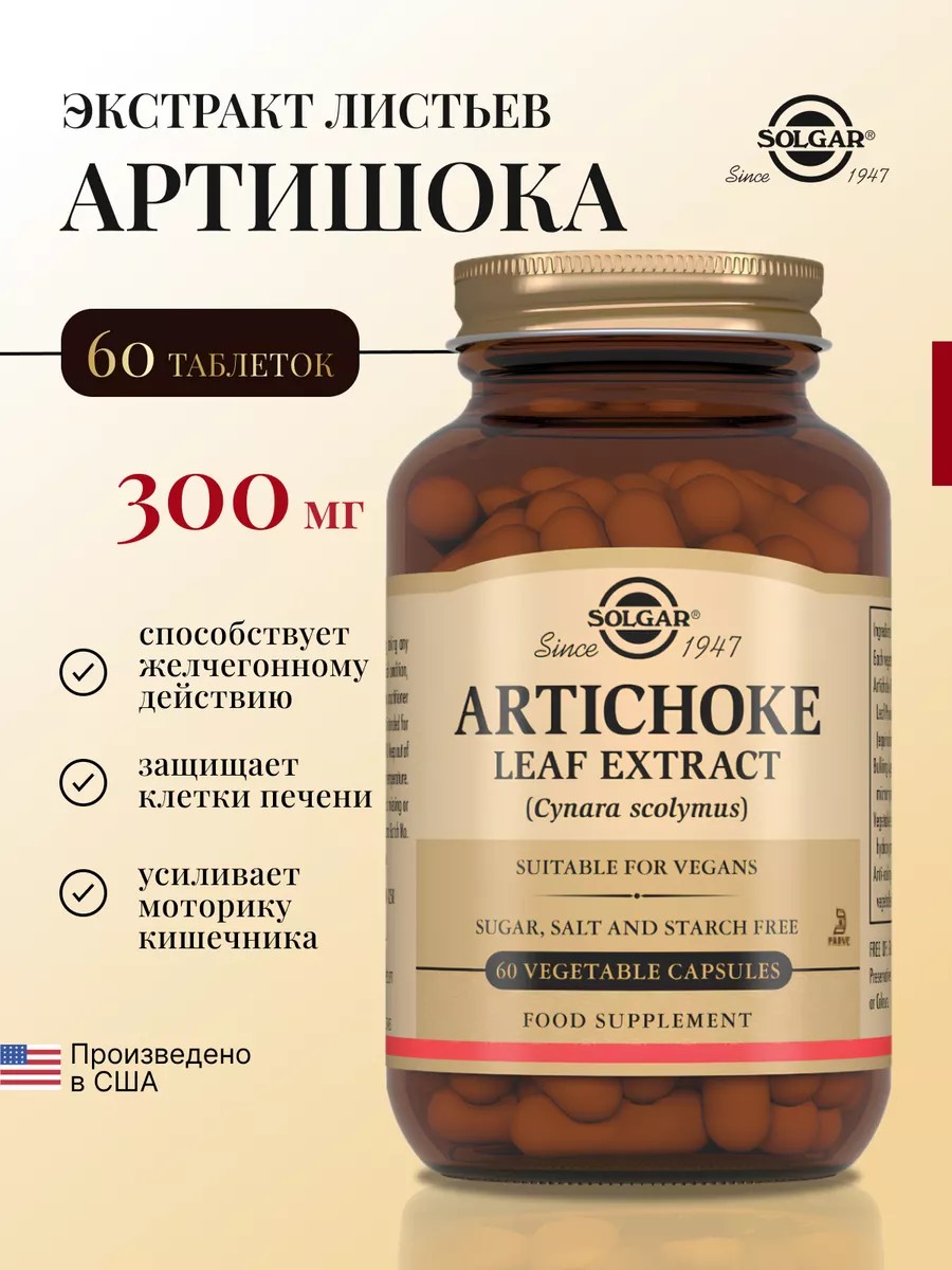 Солгар, Экстракт листьев артишока, 60 шт