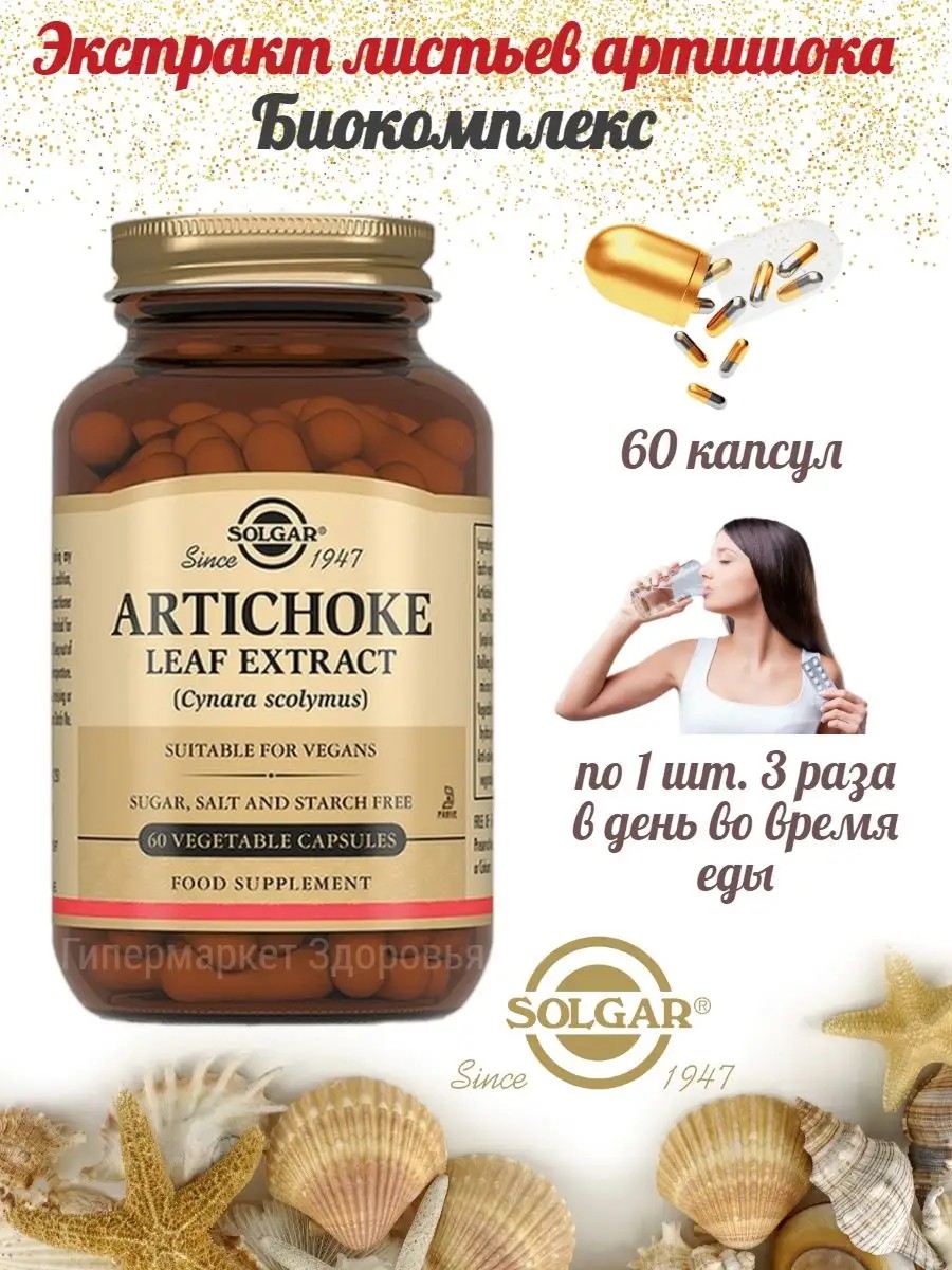 Экстракт листьев артишока Солгар (Artichoke Leaf Extract Solgar) — натуральное средство для улучшения пищеварения, очищения организма и восстановления работы печени, желчного пузыря и ЖКТ. Этот растительный бад на основе экстракта артишока 300 мг способствует детоксикации, мягко стимулирует выработку желчи и обладает желчегонными свойствами, что помогает при застое желчи, сбоях в метаболизма и образовании камней в желчевыводящих путях.