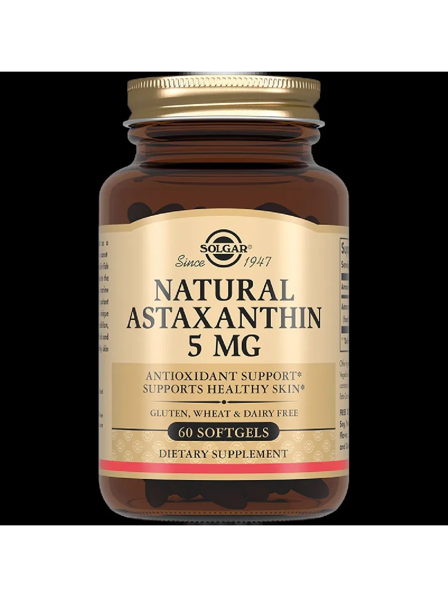 Natural Astaxanthin 5 mg Softgels is a natural antioxidant in an optimal dosage of 5 mg, obtained from freshwater algae for daily antioxidant support of the body.