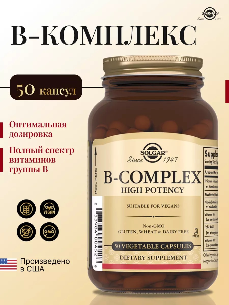 Солгар B-комплекс состоит из витаминов группы В , которые оказывают благотворный эффект на энергетический обмен, нервную систему, оказывают иммунную поддержку. Каждая капсула содержит оптимальную дозу витаминов, которая удобна для повседневного приема. Solgar B-комплекс важен для людей, ведущих активный образ жизни, а также для тех, кто испытывает стрессовые ситуации.