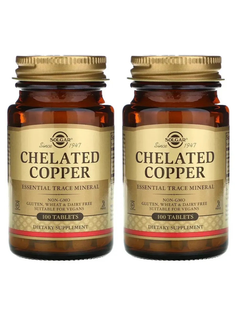 SOLGAR Chelated Copper (Хелат Меди), 100 таблеток (400 мг) х 2 уп