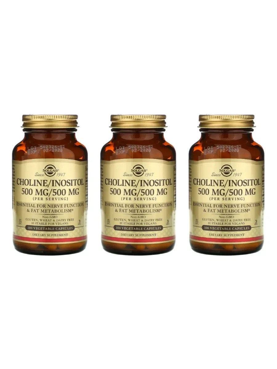SOLGAR Choline/Inositol 500 mg/500 mg, 100 капсул (1040 мг) х 3 уп