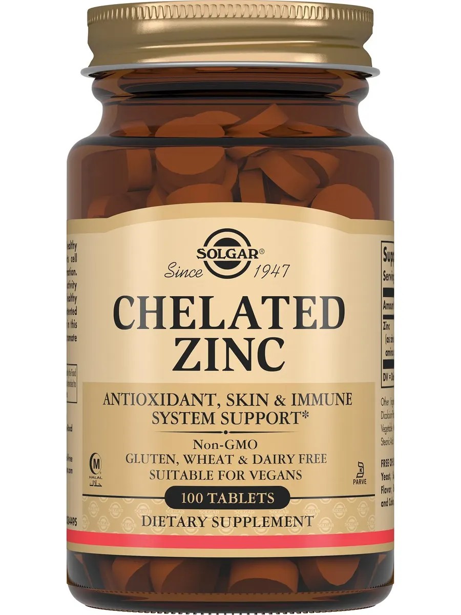 Как минерал ЦИНК является антиоксидантом, способствует повышению естественной сопротивляемости организма; способствует укреплению иммунитета; поддерживает здоровое состояние кожи, волос и ногтей. Дополнительный прием цинка позволяет регулировать деятельность сальных желез, снижая жирный блеск на коже. Цинк важный минерал для поддержания репродуктивной функции мужчин. Помогает иммунной системе защищаться от вирусов и бактерий, улучшает состояние опорно-двигательного аппарата, сердечно-сосудистой системы. Цинк - это важнейший минерал, который содержится в клетках человека и отвечает за работу всех систем организма. Не содержит глютена, пшеницы, молочных продуктов, без ГМО. Без консервантов. Подходит для вегетарианцев. Без красителей, без отдушек. По 1 таблетке в день во время еды. Противопоказания - индивидуальная непереносимость компонентов. Состав: 1 табл. содержит: Цинк 22 мг.нас можно найти: солгар, витамины, витамины солгар