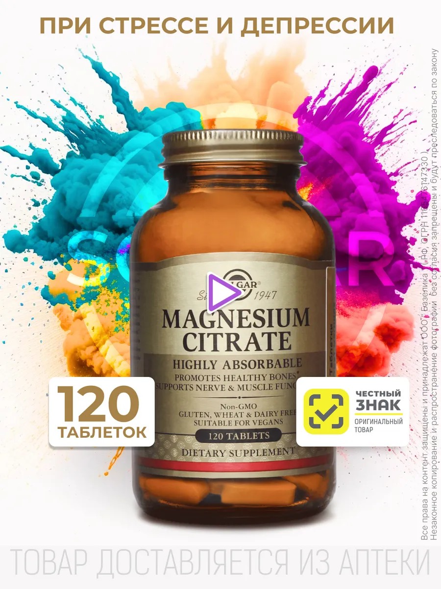 Solgar Magnesium Citrate is suitable for both men and women to maintain energy and normalize cardiovascular function.