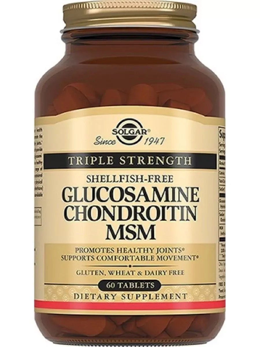 Solgar Glucosamine, Chondroitin, and MSM Complex (60 tablets, 2090 mg each) is a dietary supplement that promotes the restoration and prevention of further destruction of articular cartilage and improves joint mobility.