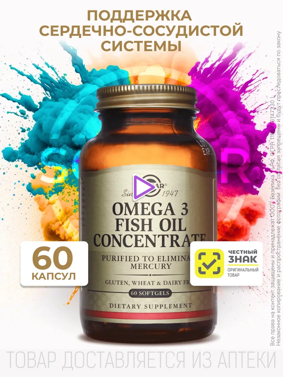 Жирные кислоты омега-3 от Солгар улучшают кровообращение и поддерживают нормальный уровень триглицеридов.Данная формула представляет собой натуральный концентрированный рыбий жир с оптимальным содержанием омега-3 полиненасыщенных жирных кислот, которые способствуют защите зрения, улучшению работы головного мозга, профилактике сердечно-сосудистых заболеваний, способствуют хорошему настроению.