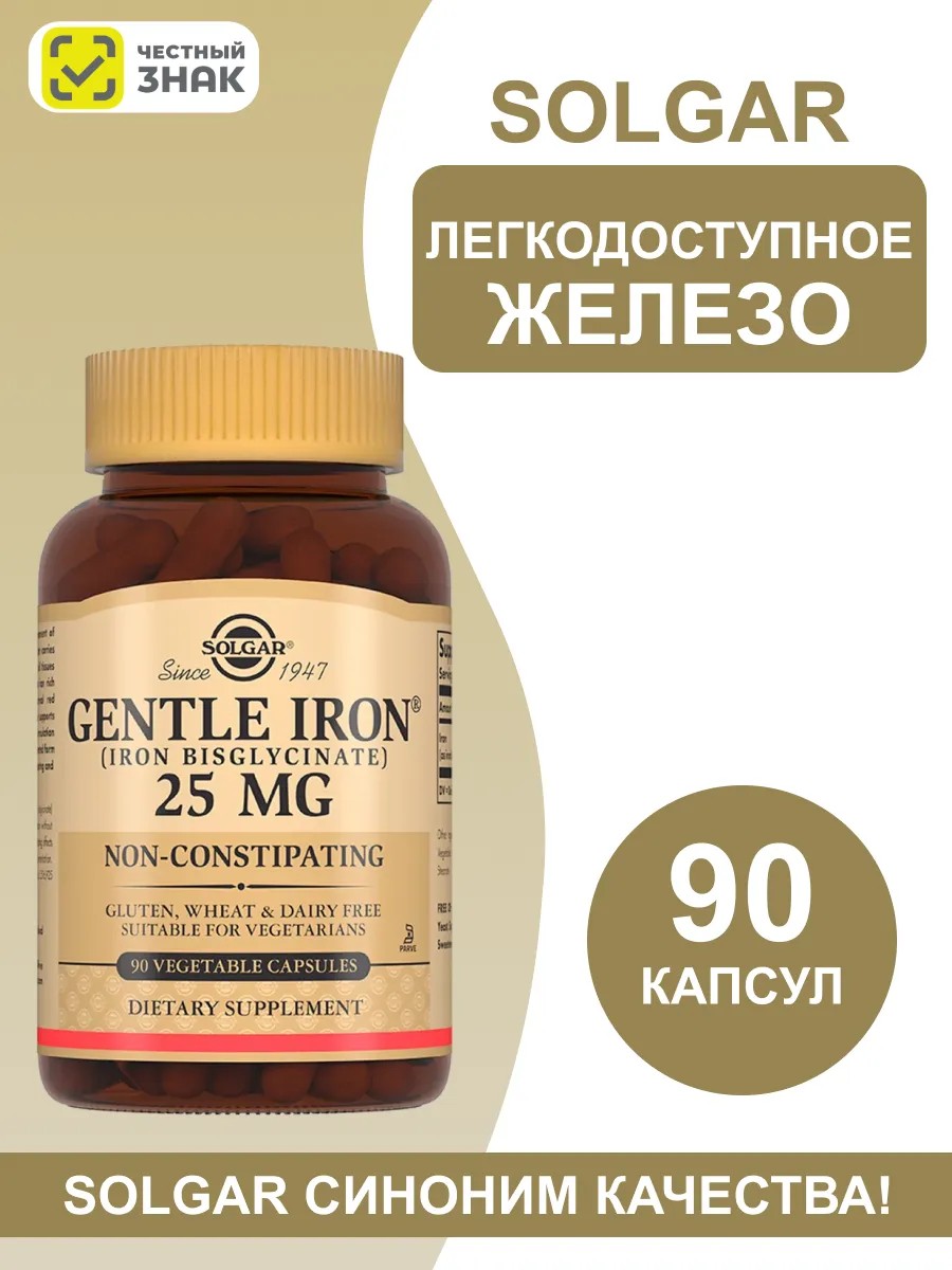 SOLGAR Легкодоступное железо Джентл Айрон 25 мг 90 капсул