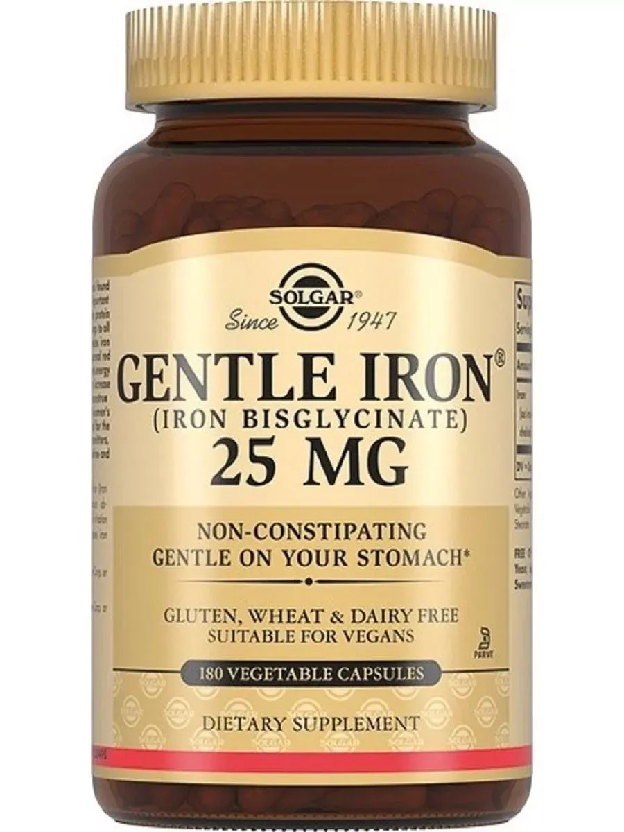 Iron is an essential micronutrient necessary for normal human function. Iron deficiency disrupts hemoglobin synthesis, which performs a vital function in the human body—transporting oxygen to cells. Adequate iron levels are important for everyone, but women are particularly prone to iron deficiency due to regular monthly blood loss, as well as during pregnancy, breastfeeding, growth, development, and puberty. Those who consume large amounts of coffee, tea, and other caffeinated beverages are also at risk for iron deficiency. Caffeine impairs iron absorption and can contribute to or worsen iron deficiency. Solgar Gentle Iron Easy Iron contains 25 mg of iron in organic form. This form is easily digestible and reduces the risk of adverse gastrointestinal effects. Does not contain gluten, wheat, or dairy products. No preservatives. Suitable for vegetarians. No dyes or fragrances.