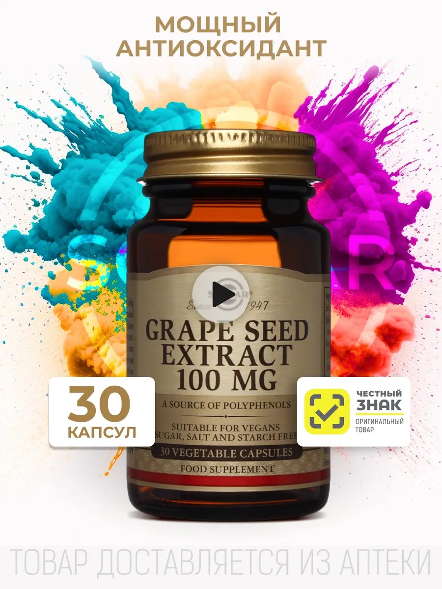 Солгар (Solgar) Капсулы «Экстракт виноградных косточек» рекомендуются в качестве биологически активной добавки к пище - источника полифенольных соединений и проантоцианидинов.