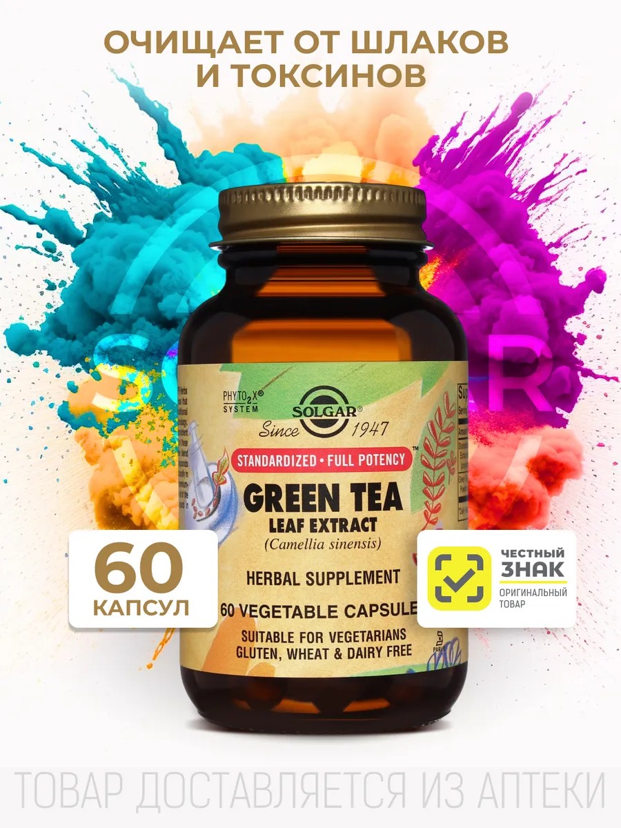 Solgar Green Tea Leaf Extract is a dietary supplement, a source of tannins and caffeine.