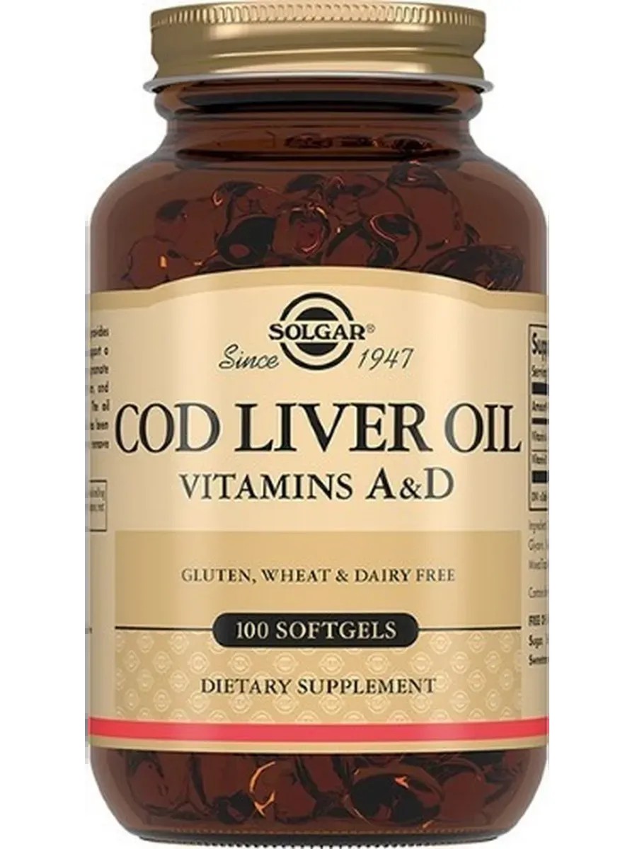Cod liver oil capsules are recommended as a dietary supplement – an additional source of vitamins A and D, containing omega-3 polyunsaturated fatty acids. Vitamin A helps strengthen the immune system, promote collagen synthesis, protect vision, and promote wound healing. Vitamin D helps strengthen bones, reduce the risk of osteoporosis, increase resistance to infections, and boost levels of serotonin, the "happiness hormone." This product is manufactured using molecular distillation, which removes heavy metals present in cod.