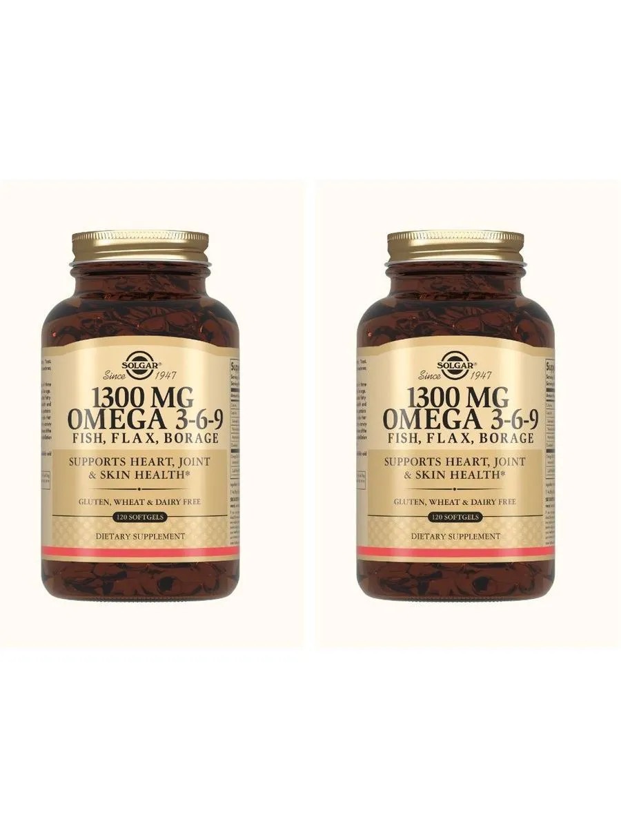 SOLGAR комплекс жирных кислот 1300мг омега 3-6-9 n120 капс - 2шт