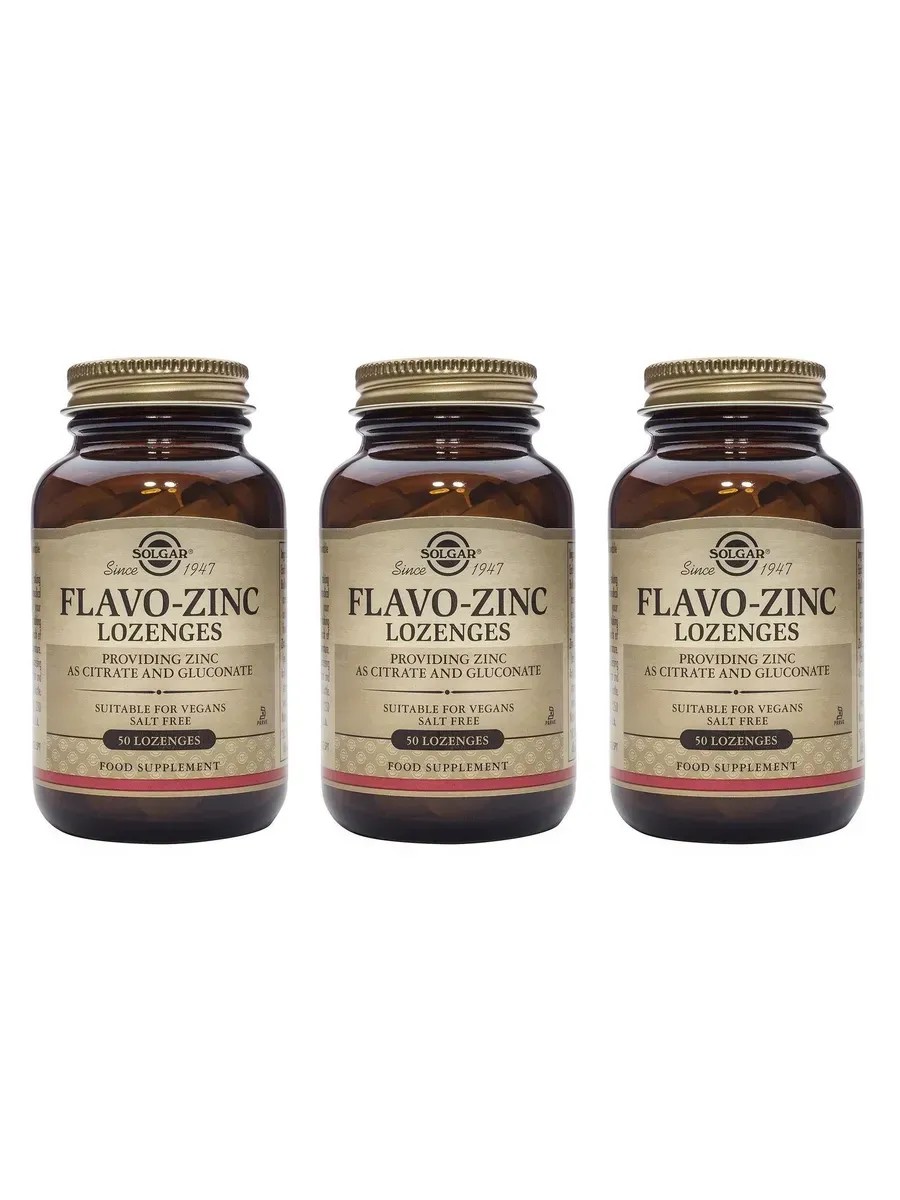 SOLGAR Flavo-Zinc Lozenges, 50 пастилок (1300 мг) х 3 уп