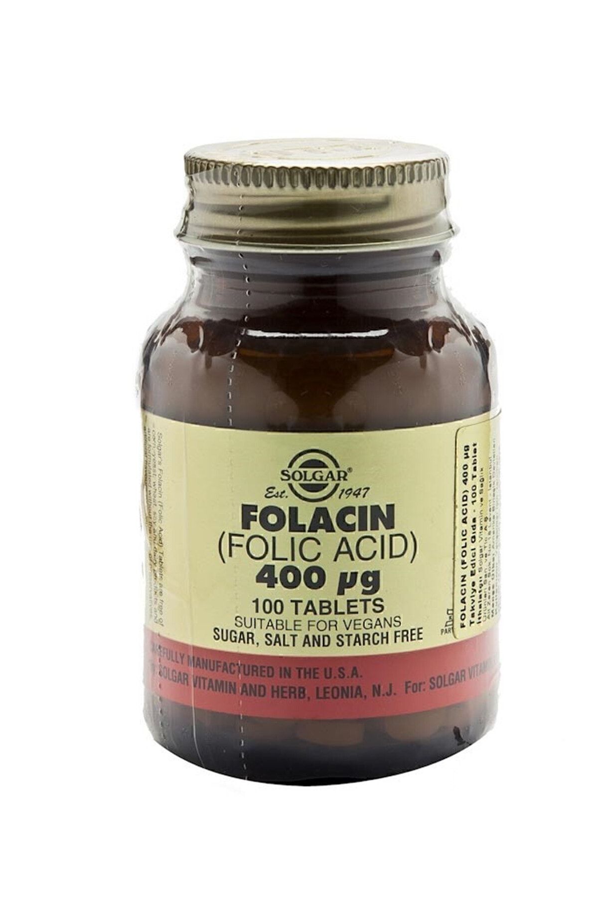 Solgar Folic Acid (Folacin) 400 Mcg 100 Tablets